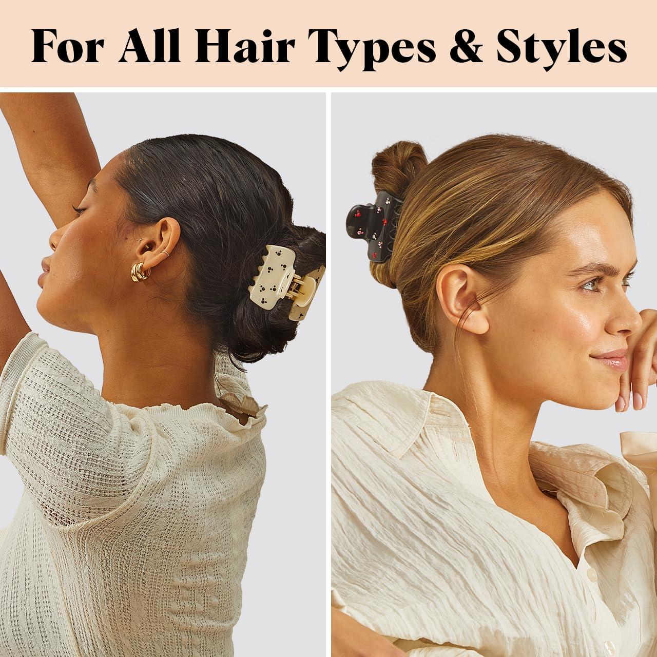 VERSATILE USAGE: From casual outings to special occasions, our medium claw clips for thin hair effortlessly inject playful charm into any hairstyle. Versatile for everyday wear, Kitsch Medium Size Hair Claw Clips for Women is your secret weapon for instant style transformation!