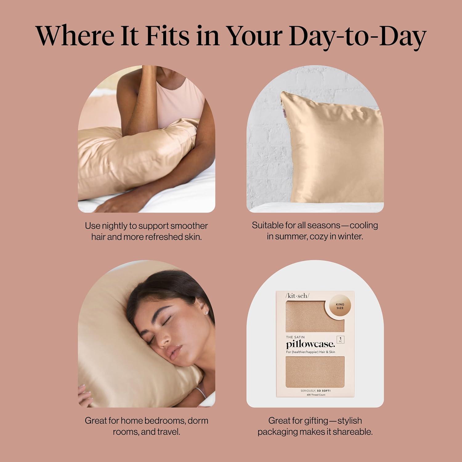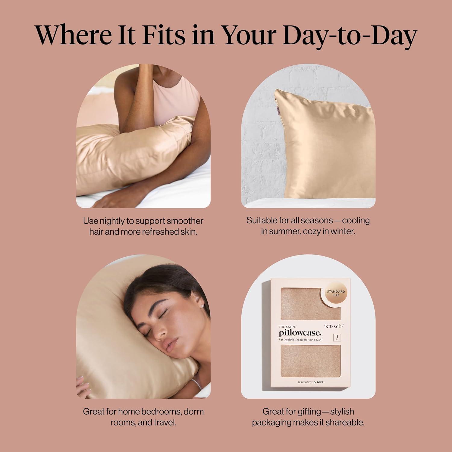 Kitsch Holiday Satin Pillowcase with Zipper for Hair and Skin – Softer Than Silk Pillow Cases, Cooling Pillow Covers, Machine Washable, Wrinkle-Free – Queen/Standard (19×26) – Ivory, 2pcs(Champagne)