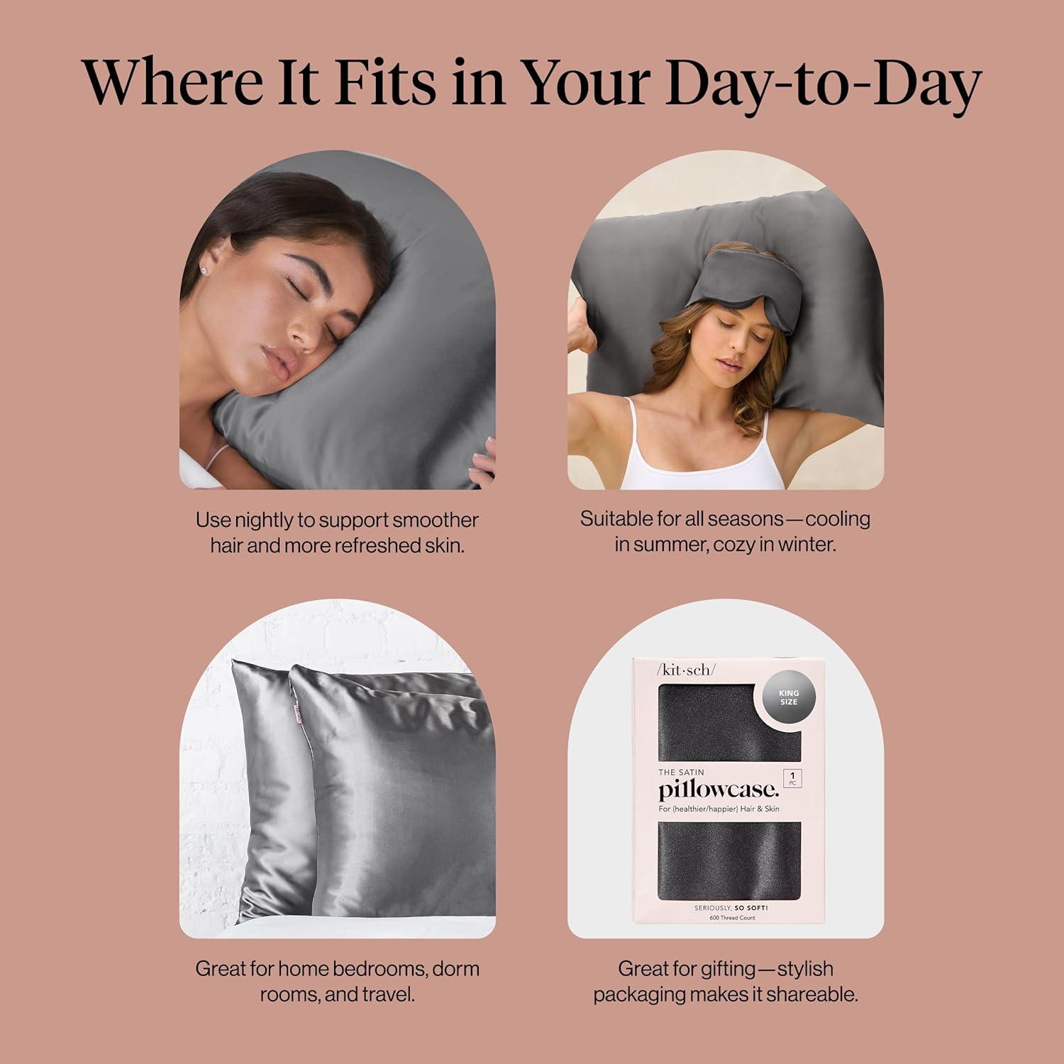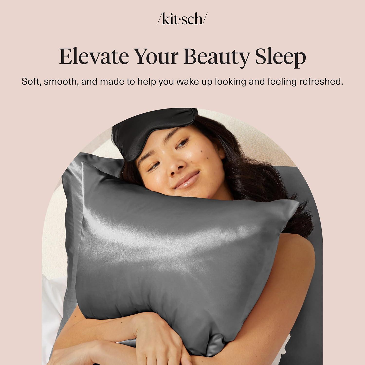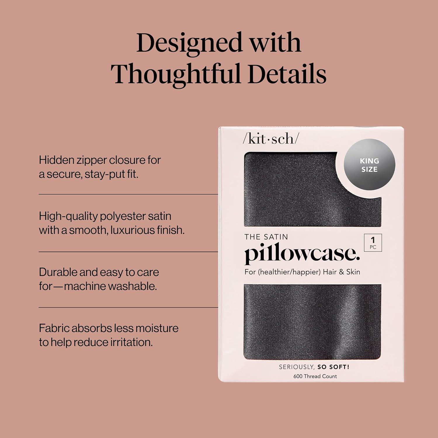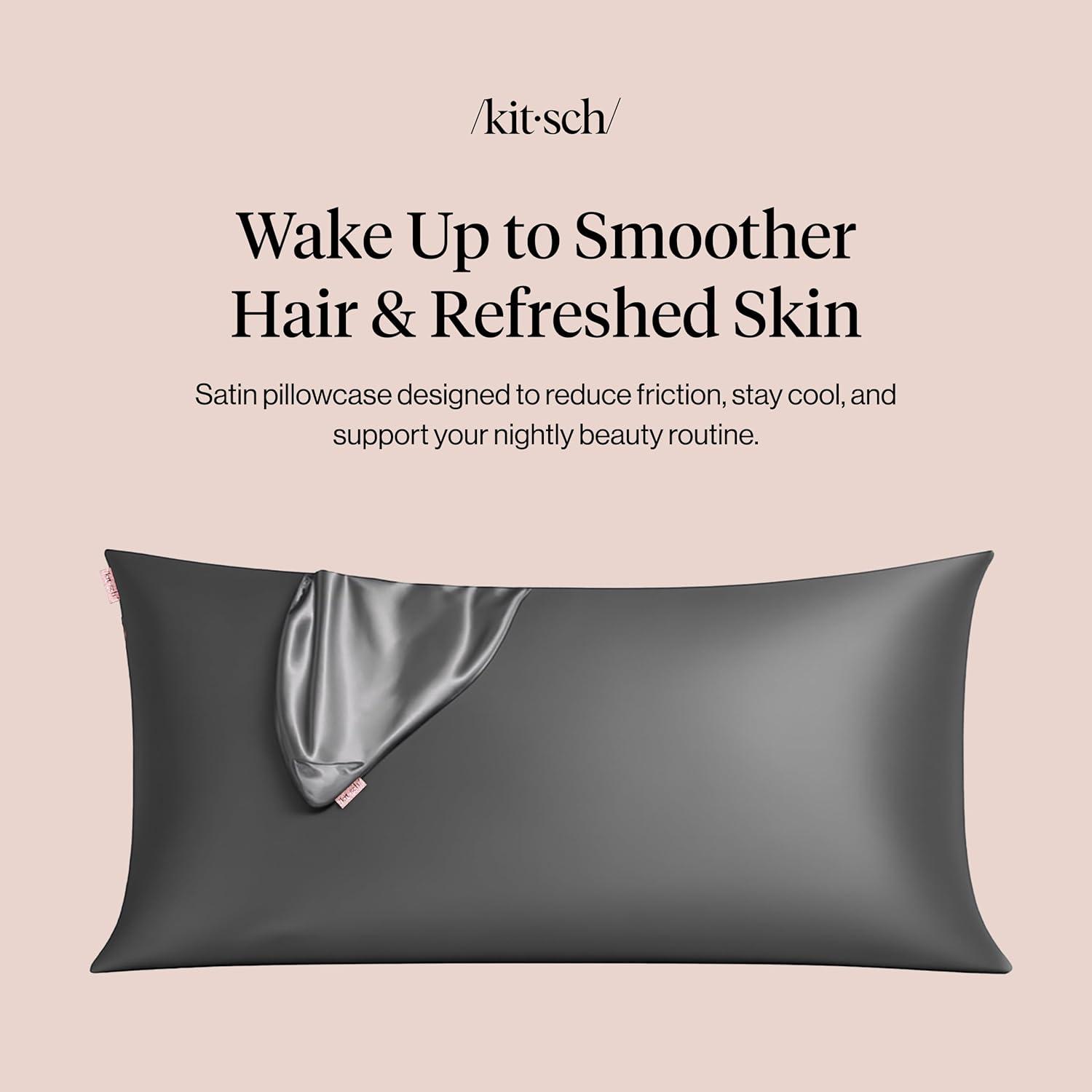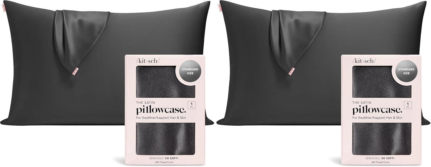 Kitsch Holiday Satin Pillowcase with Zipper for Hair and Skin – Softer Than Silk Pillow Cases, Cooling Pillow Covers, Machine Washable, Wrinkle-Free – Queen/Standard (19×26) – Ivory, 2pcs(Charcoal)