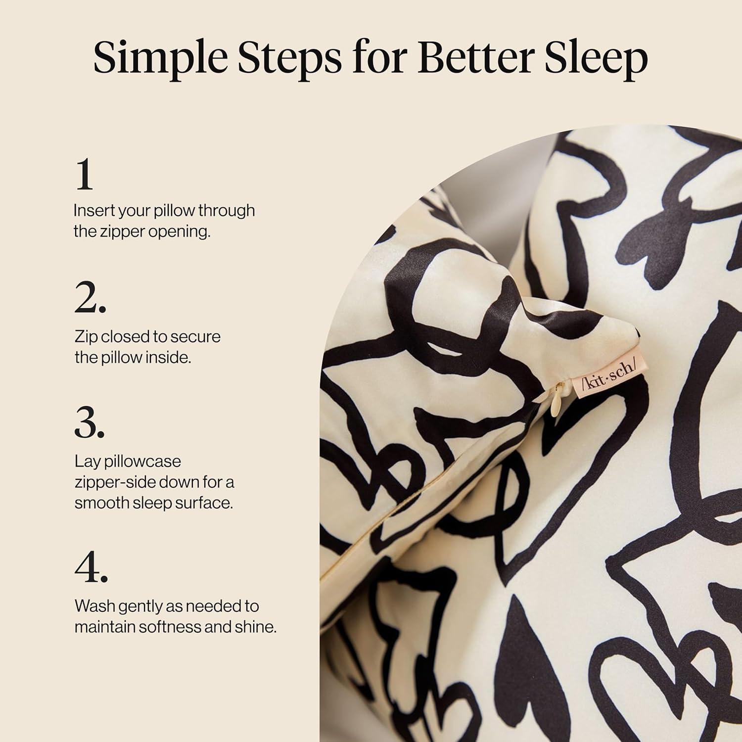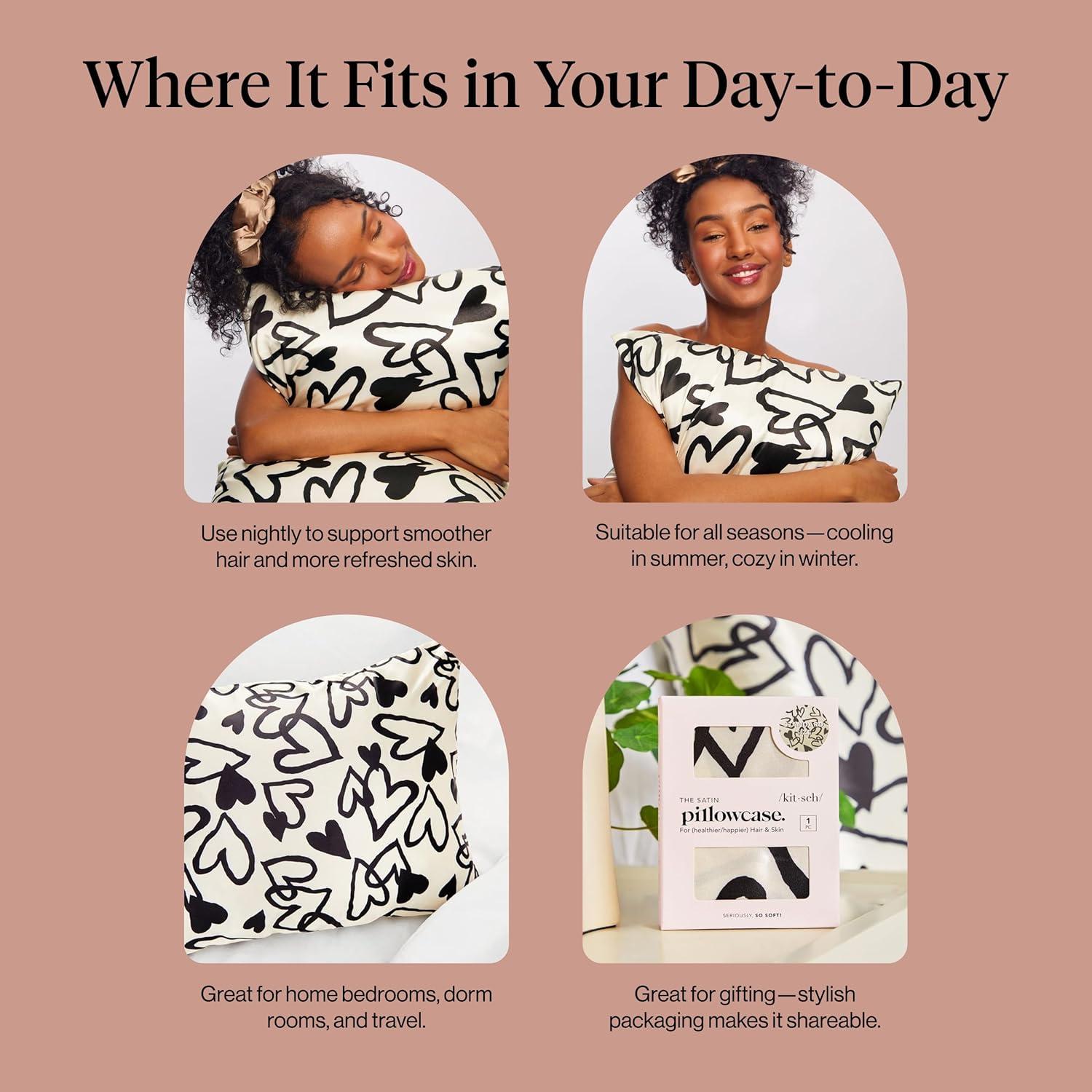 Kitsch Holiday Satin Pillowcase with Zipper for Hair and Skin – Softer Than Silk Pillow Cases, Cooling Pillow Covers, Machine Washable, Wrinkle-Free – Queen/Standard (19×26) – Ivory, 2pcs(Heart)