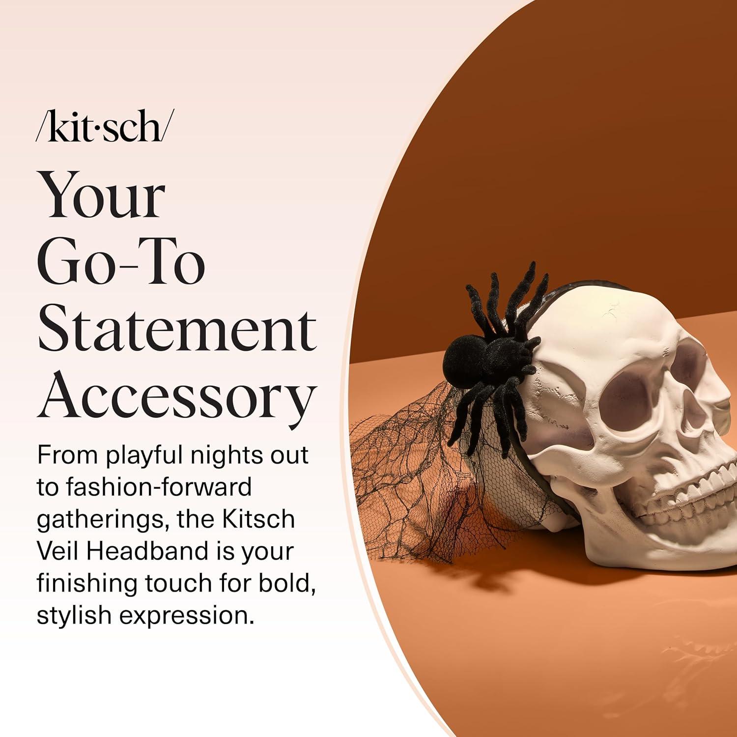 Kitsch Lace Headband & Mask – Black Cat Halloween Accessories – Elegant Lace Cat Ear & Mask Duo – Black Headband for Halloween Costume, Parties & Hair Accessories | Ideal Gifts for Women – 2pc Set(Spiderweb)