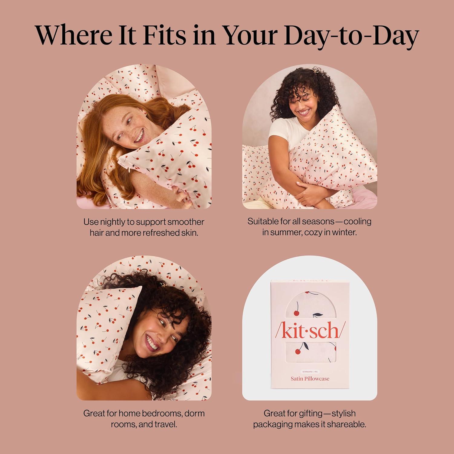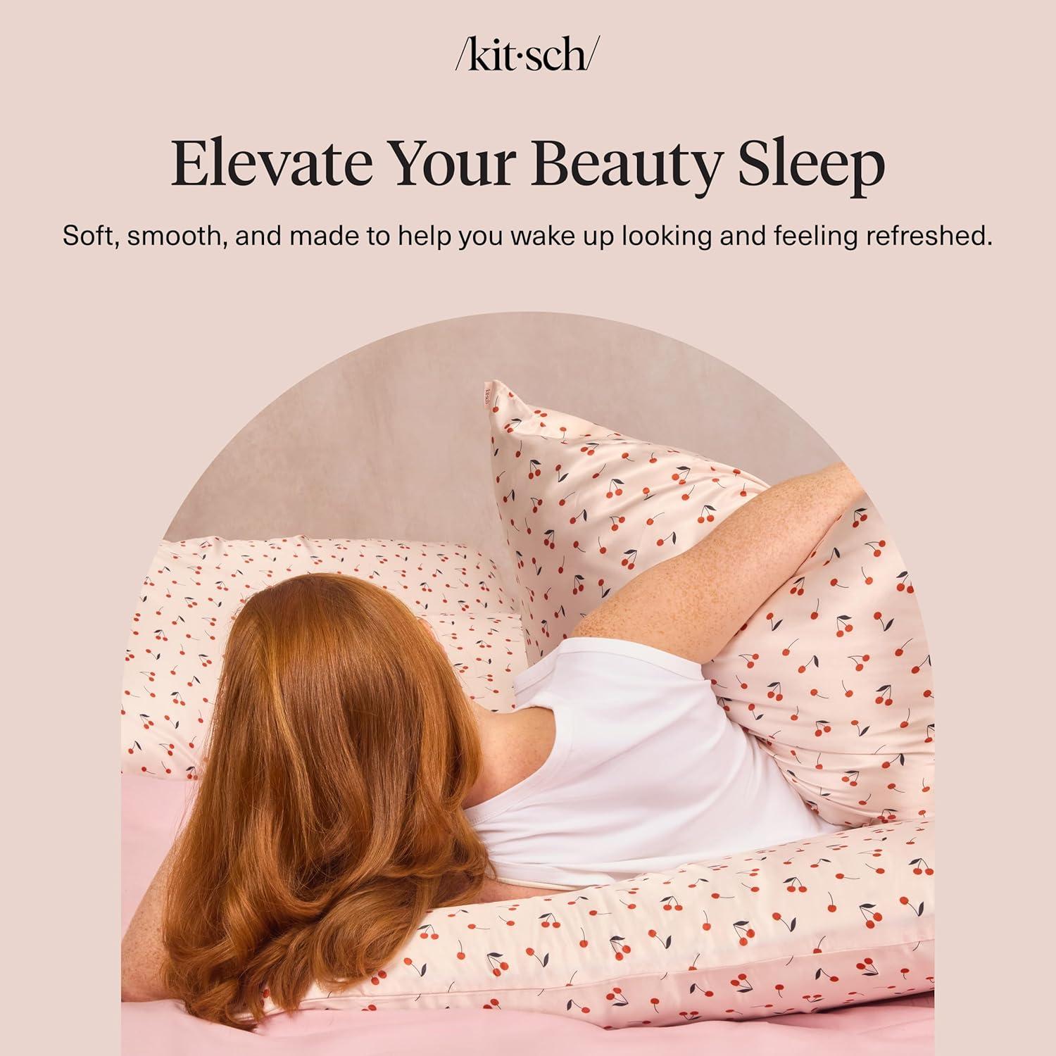 Kitsch Satin Pillowcase, Softer Than Silk Pillow Cases, Cooling Pillow Covers, King Size Pillow Cases Set of 2, Satin Pillowcase with Zipper for Hair, Skin & Quality Sleep, 19″x36″ Blush, 2pcs(Cherry Print)
