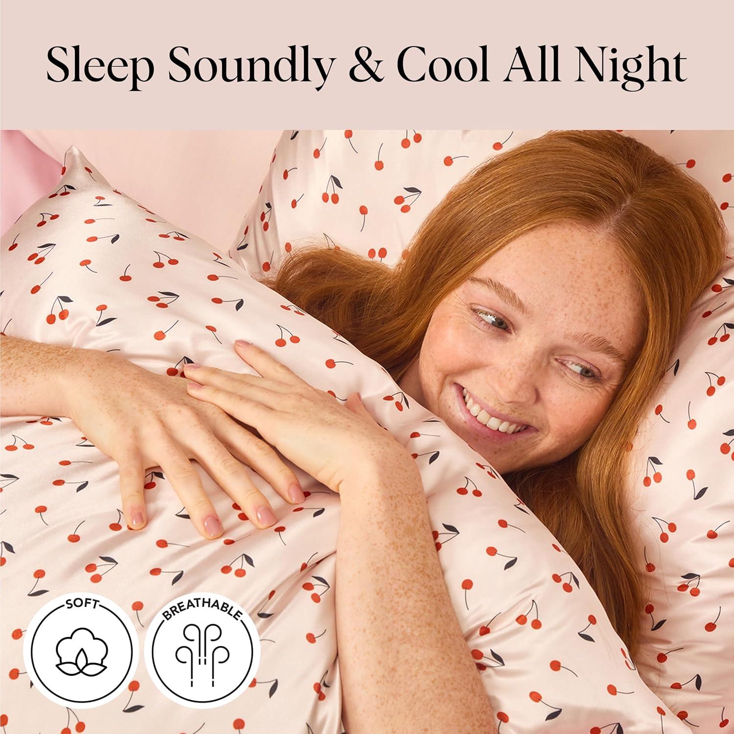 STAYS COOL & BREATHABLE ALL NIGHT – Our satin fabric regulates temperature to keep you cool and comfortable while you sleep. The silky-soft pillow case is gentle on skin, hair, eyelashes, and eyebrows—perfect for year-round comfort.