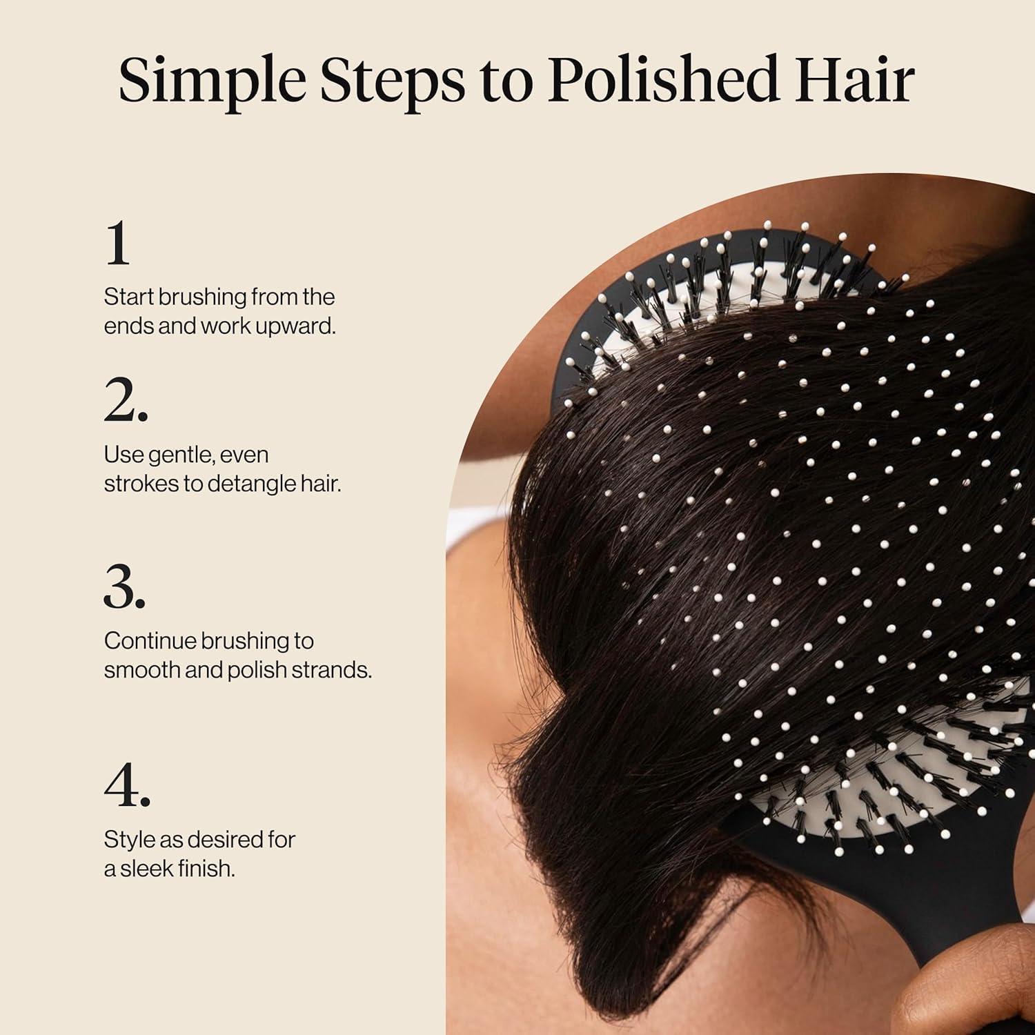 COMFORTABLE CUSHIONED DESIGN – The flexible rubber pad adapts to your scalp for tension-free brushing and gentle massage. A durable addition to your favorite hair tools and stylish enough to display with your go-to hair accessories. Works beautifully as a smoothing brush or even a soft curl brush for finishing.