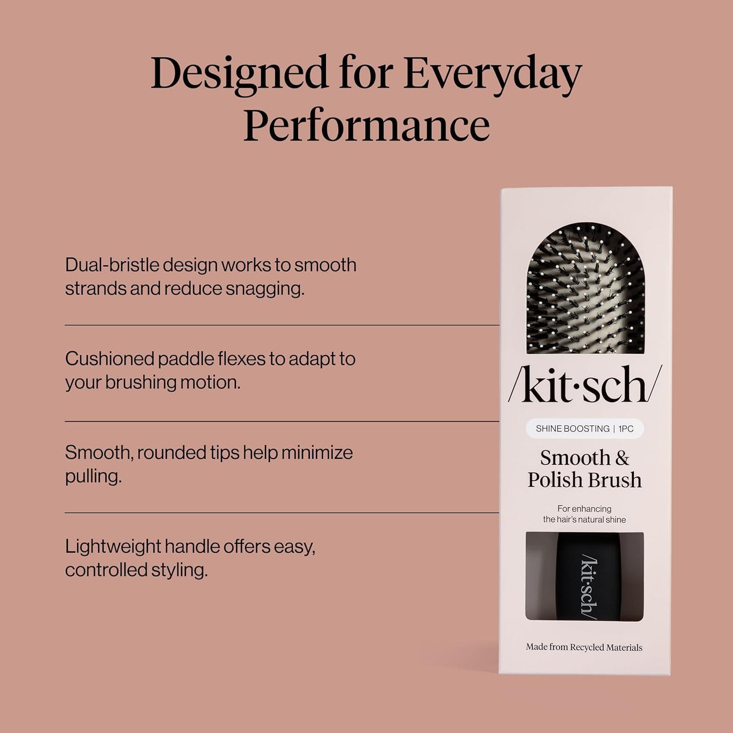 Kitsch Smooth & Polish Brush – Dual Bristle Detangler Brush, Shine & Frizz Control – Vegan Boar & Nylon Hair Brush with Cushioned Pad for Scalp Massage – Hair Care Tool for All Hair Types – Terracotta(Black)