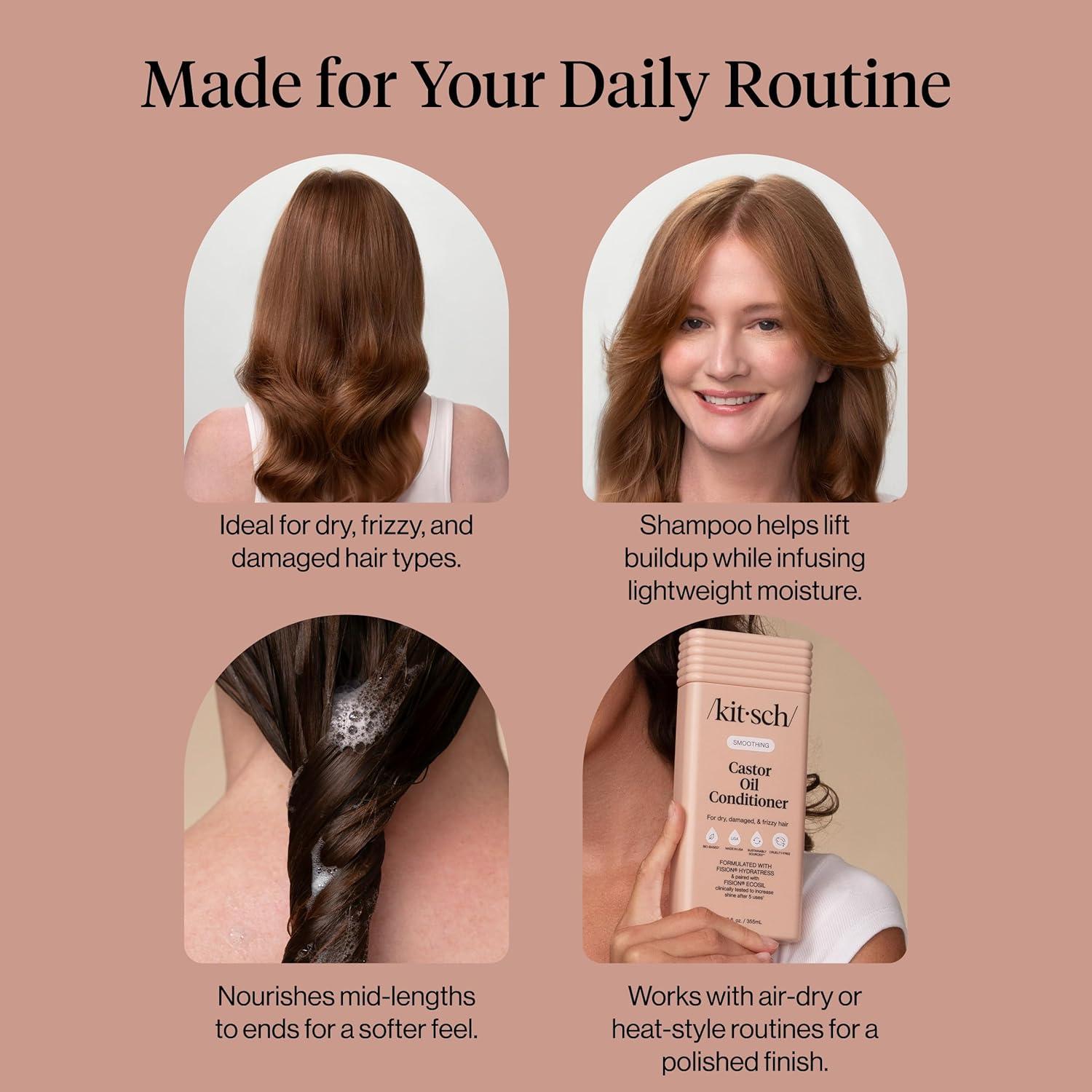 Kitsch Smoothing Castor Oil Liquid Conditioner for Women and Men – Nourishing Hair Conditioner for Dry, Damaged & Frizzy Hair – Clean, Color-Safe Hair Care, Bio-Based Formula, Made in USA – 12 oz