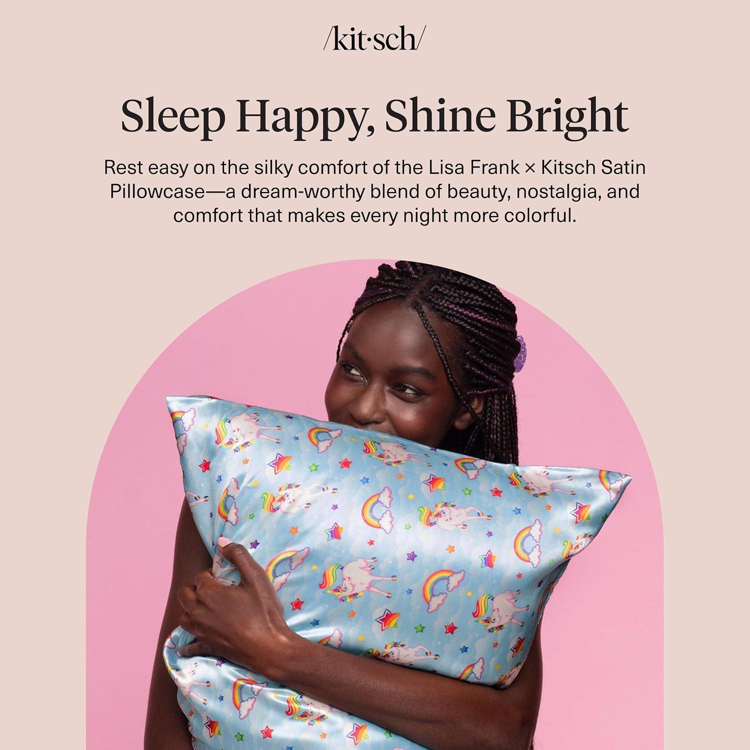 Kitsch x Lisa Frank Satin Pillowcase with Zipper for Hair & Skin, Softer Than Silk Pillow Cases Queen, Wrinkle-Free, Smooth and Cooling Satin Pillow Covers Standard/Queen Size 19×26 – Angel Kitty(Markietm)