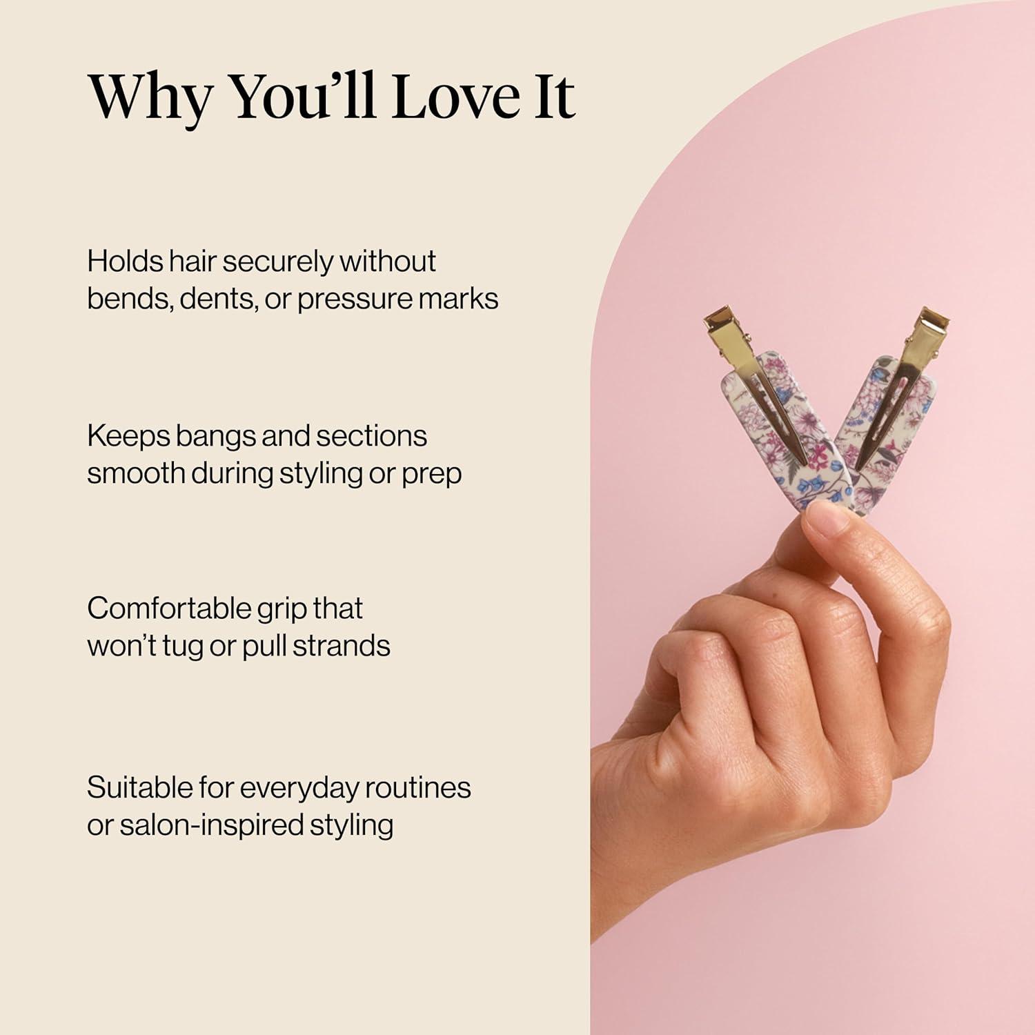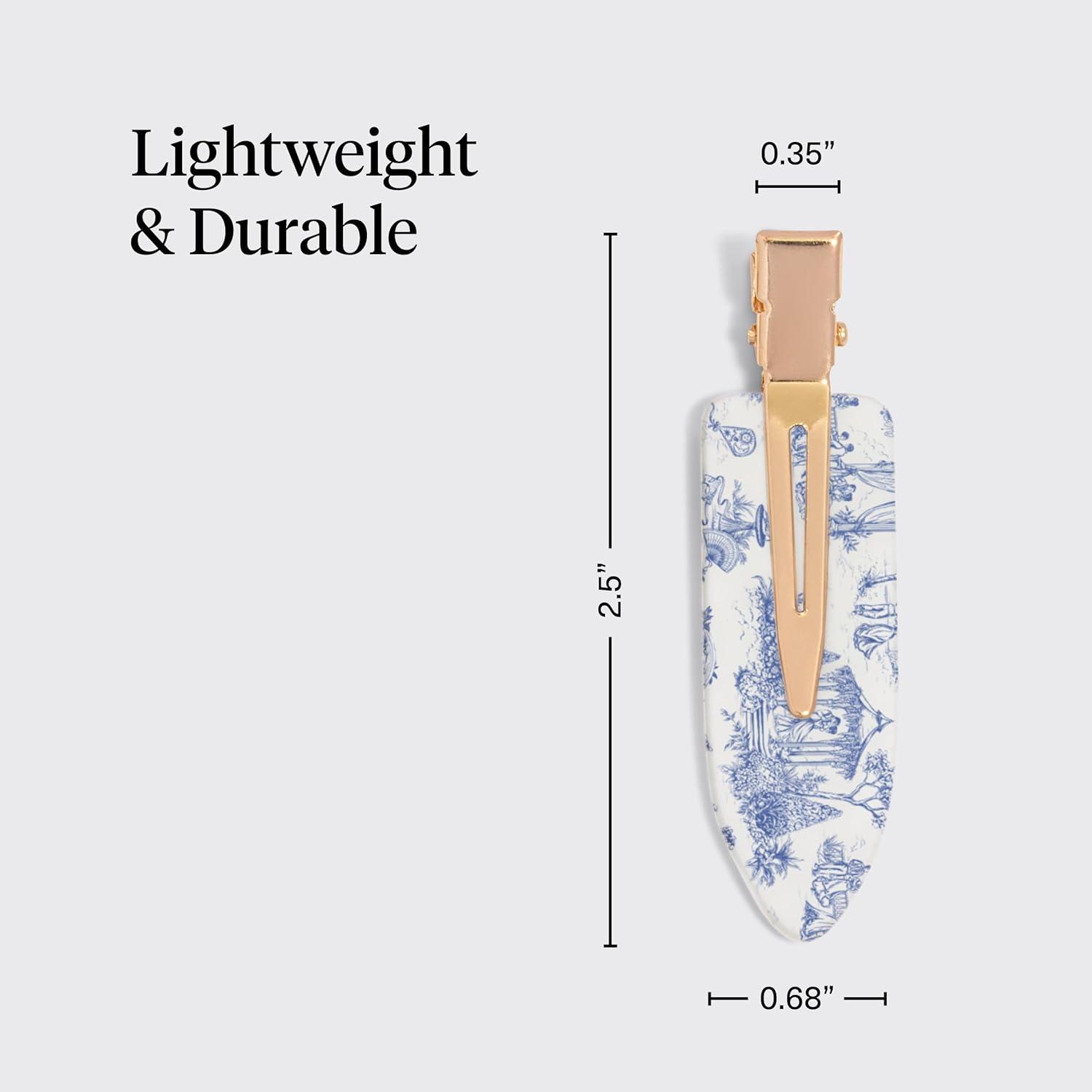 • Bridgerton x Kitsch Creaseless Hair Clips for Women – No Crease, No Bend Hair Clips for Styling, Bangs, Makeup Application, Face Wash | Recycled Acrylic – Toile in Bloom | Ideal Gifts for Women, 4pcs(Toile in Bloom)