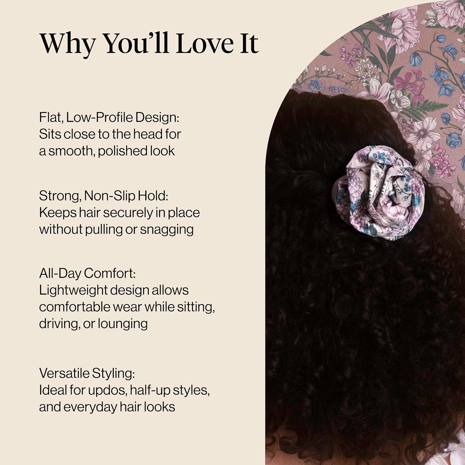 Bridgerton x Kitsch Medium Satin Rosette Flat Claw Clips for Women – Stylish Flat Hair Clips, Strong Hold for Thick & Fine Hair | Non-Slip for Secure, Comfortable All-Day Wear – Wisteria