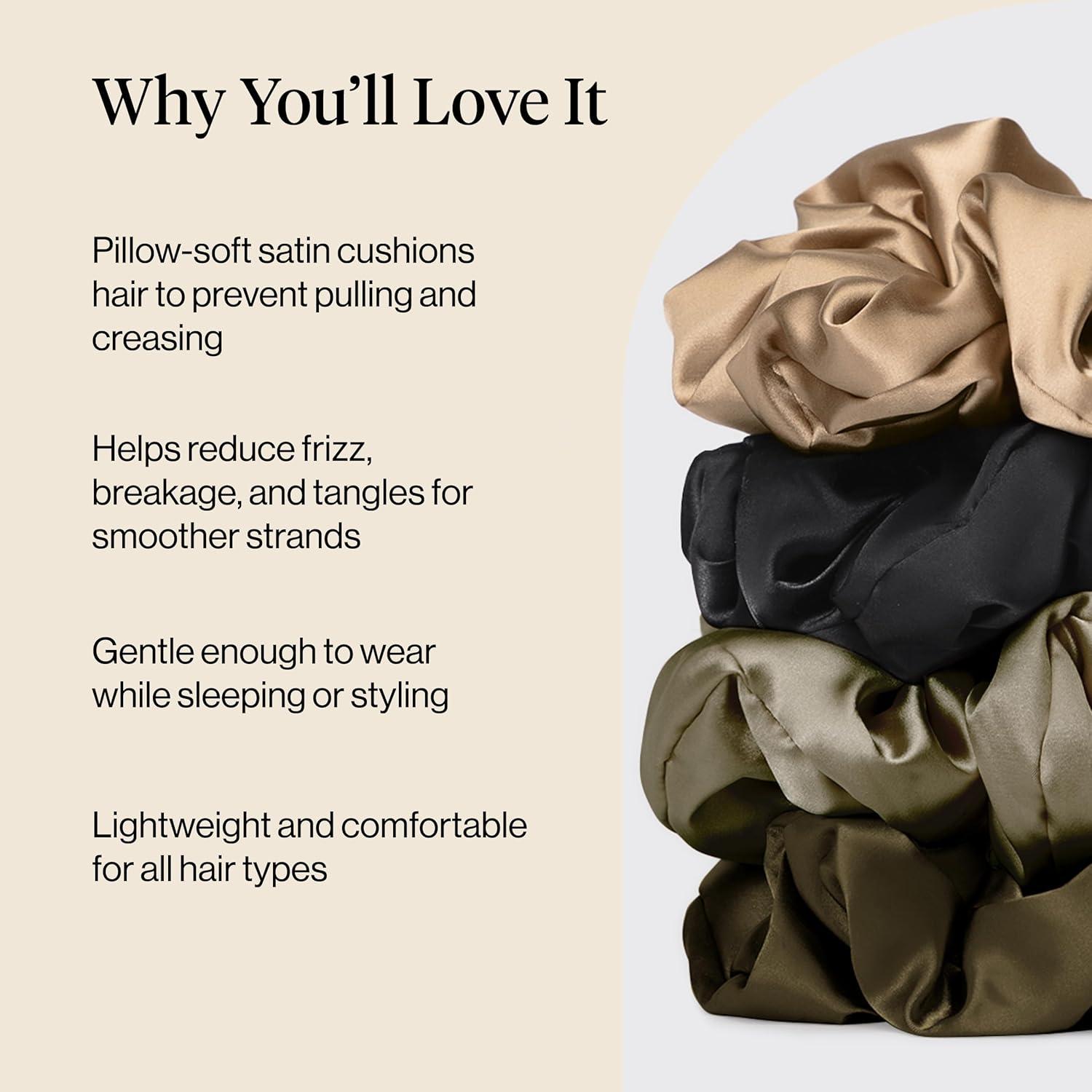 Bridgerton x Kitsch Satin Scrunchies for Women, No Snag, No Tugging, Soft & Comfortable Scrunchies for Girls, Perfect for Day or Night | Ideal Gifts for Women – Toile De Blue, 2pcs(Black (4 pcs))