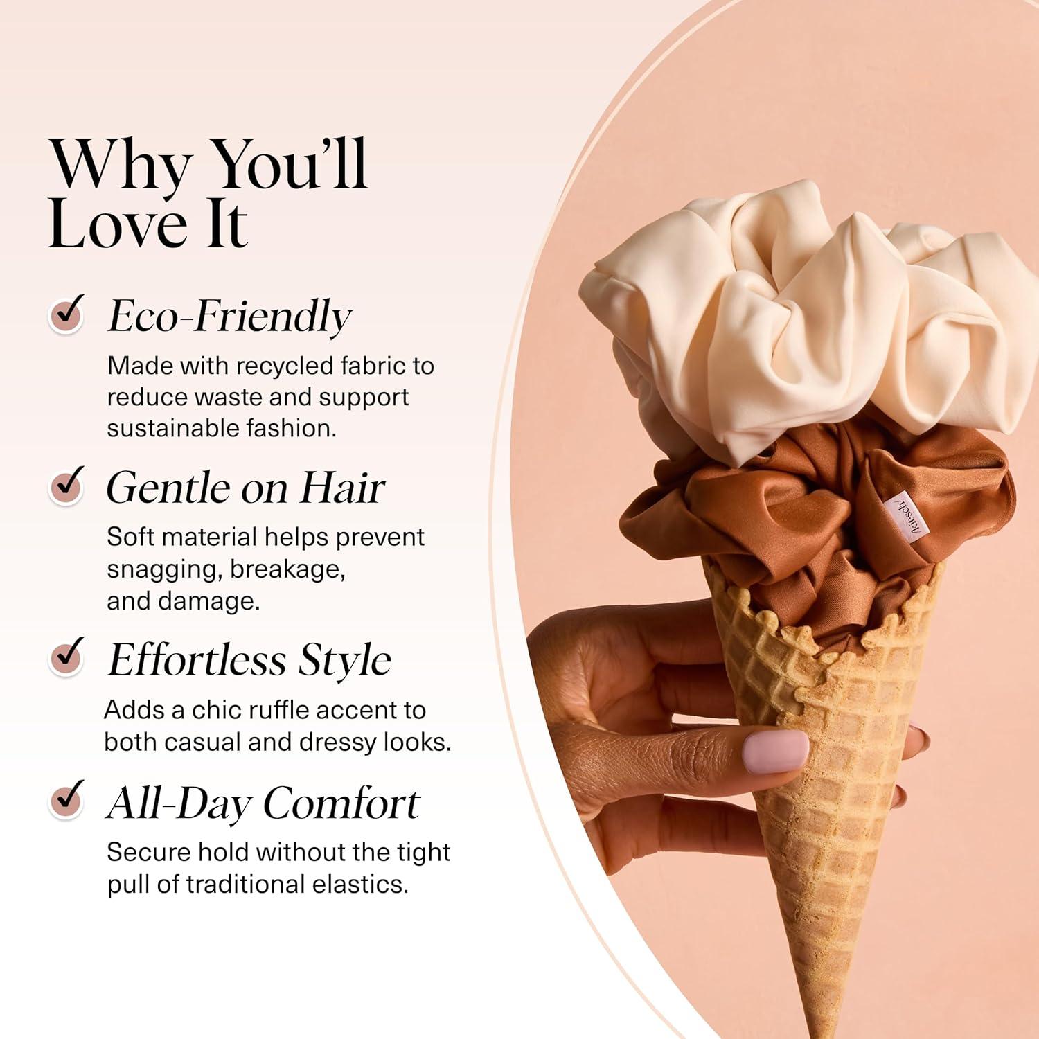 • Bridgerton x Kitsch Satin Scrunchies for Women, No Snag, No Tugging, Soft & Comfortable Scrunchies for Girls, Perfect for Day or Night | Ideal Gifts for Women – Toile De Blue, 2pcs(Camel & Cream)