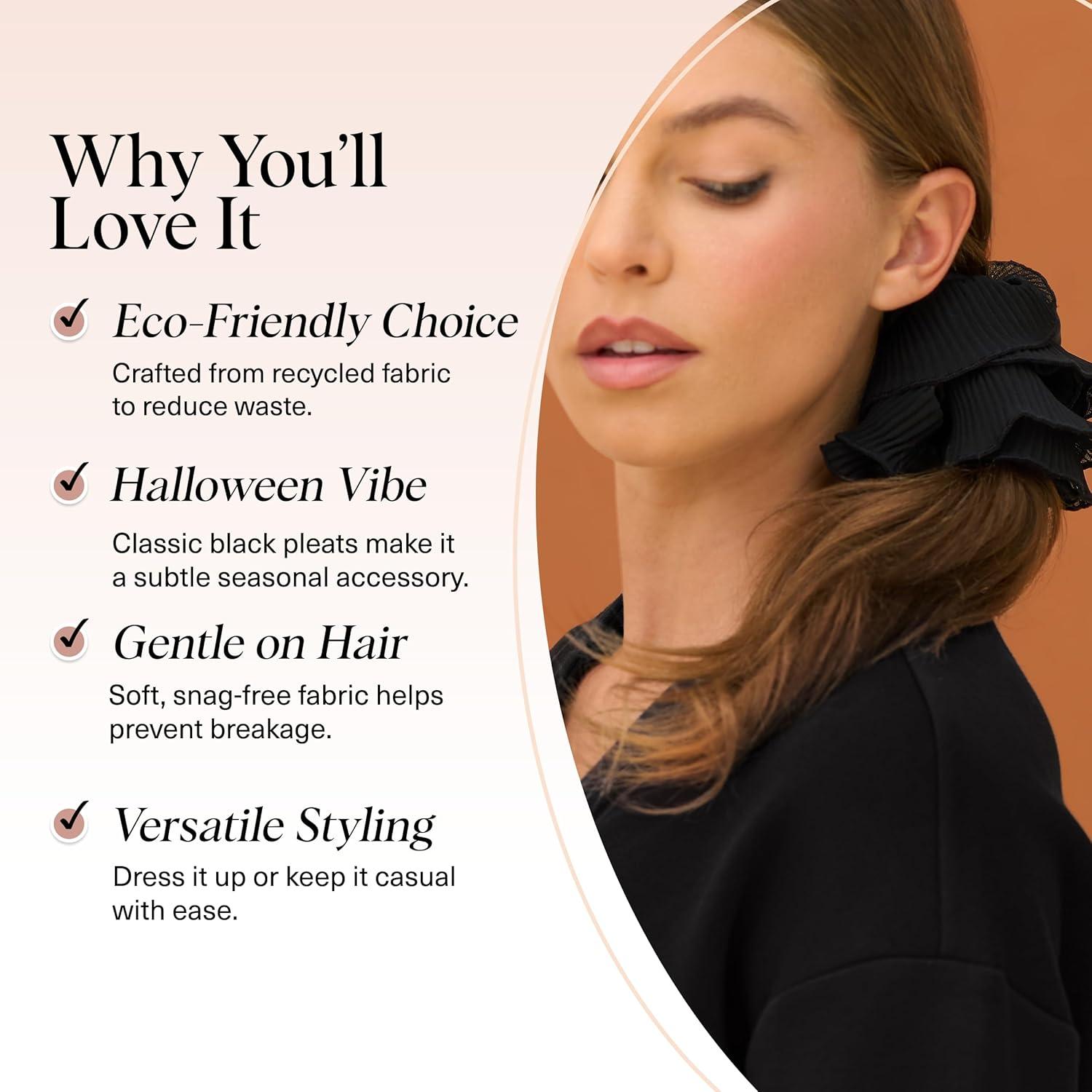 Bridgerton x Kitsch Satin Scrunchies for Women, No Snag, No Tugging, Soft & Comfortable Scrunchies for Girls, Perfect for Day or Night | Ideal Gifts for Women – Toile De Blue, 2pcs(Black Ruffle)
