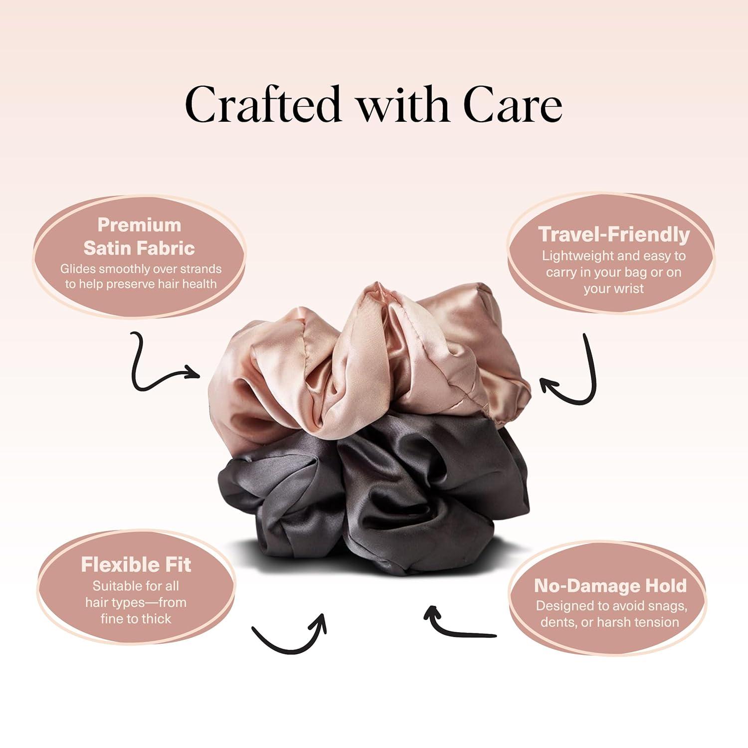 • Bridgerton x Kitsch Satin Scrunchies for Women, No Snag, No Tugging, Soft & Comfortable Scrunchies for Girls, Perfect for Day or Night | Ideal Gifts for Women – Toile De Blue, 2pcs(Blush/Charcoal)