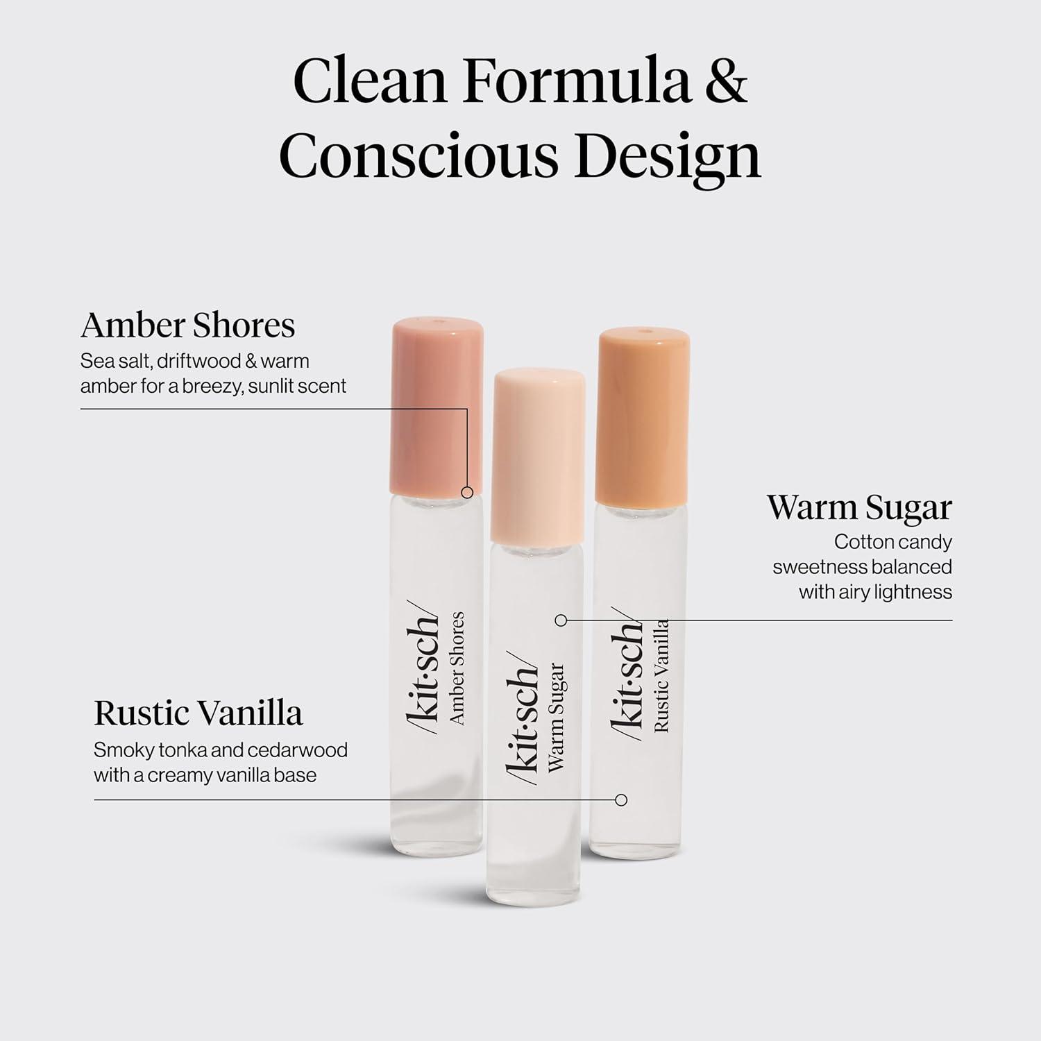 Kitsch Hair Perfume for Women – Trio Set | Clean, Deodorizing & Patented Odor-Eliminating Technology Hair Spray & Body Mist – Freshen Hair, Pillows – Amber Shores, Warm Sugar, Rustic Vanilla, 3x10mL