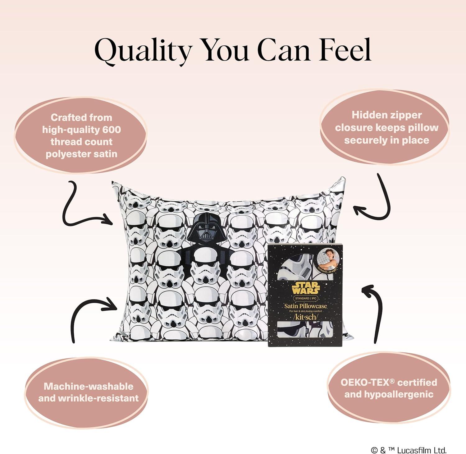 • Kitsch x BT21 Satin Pillowcase with Zipper – Better Than Silk Pillowcase, Koya Character & Funky Floral Print – Soft Cooling Toddler Bed Time Pillow Case for Hair & Skin – Queen/Standard 19×26(Darth Vader Stormtroopers)