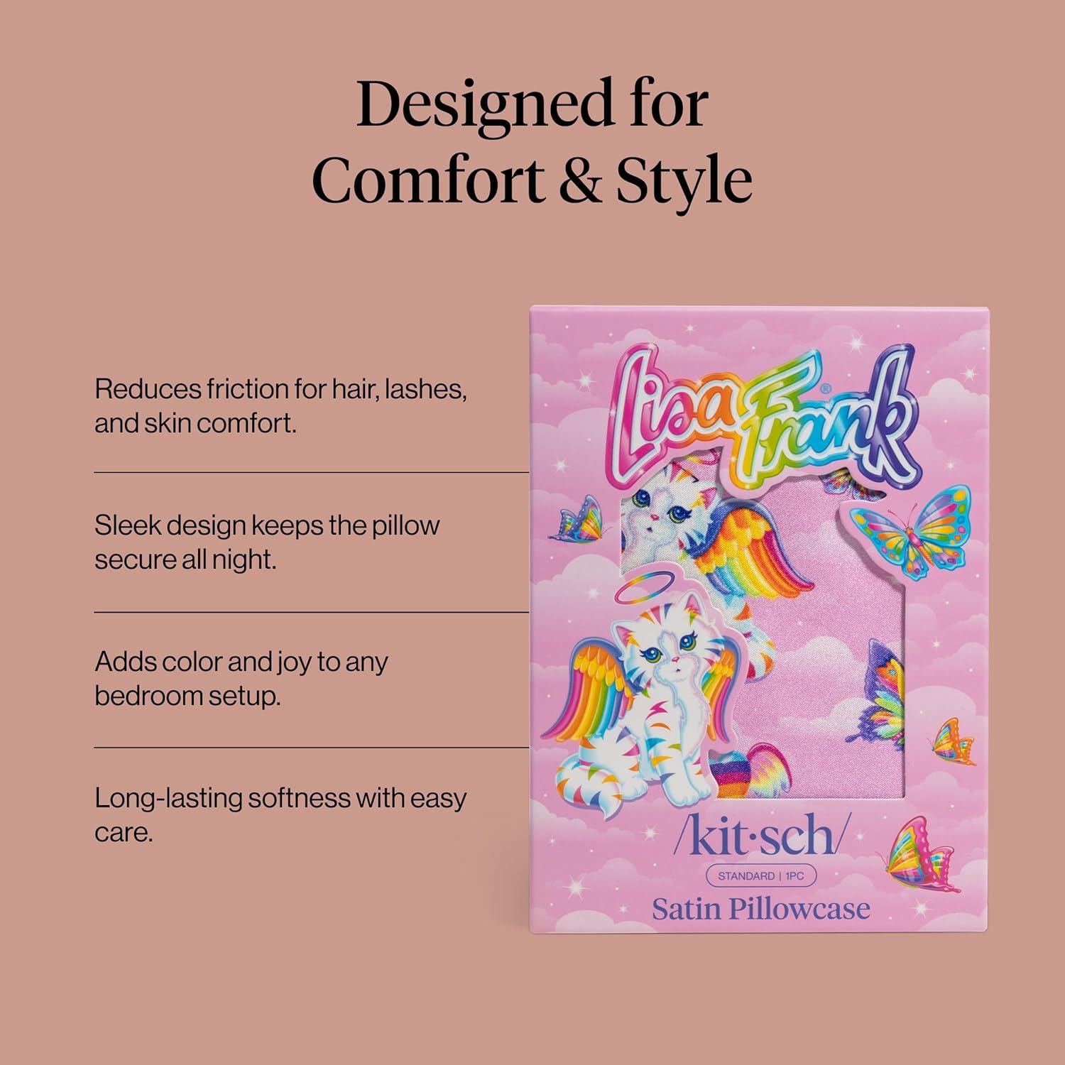 imageKitsch x Lisa Frank Satin Pillowcase with Zipper for Hair amp Skin Softer Than Silk Pillow Cases Queen WrinkleFree Smooth and Cooling Satin Pillow Covers StandardQueen Size 19x26  Angel KittyR2d2  C3po