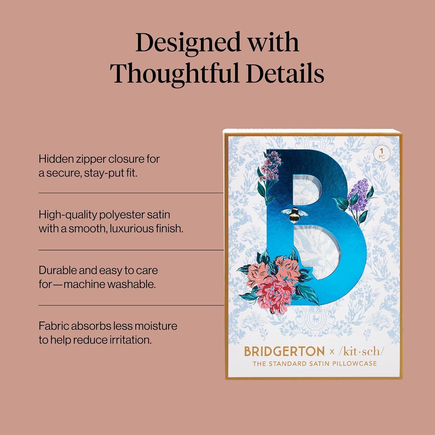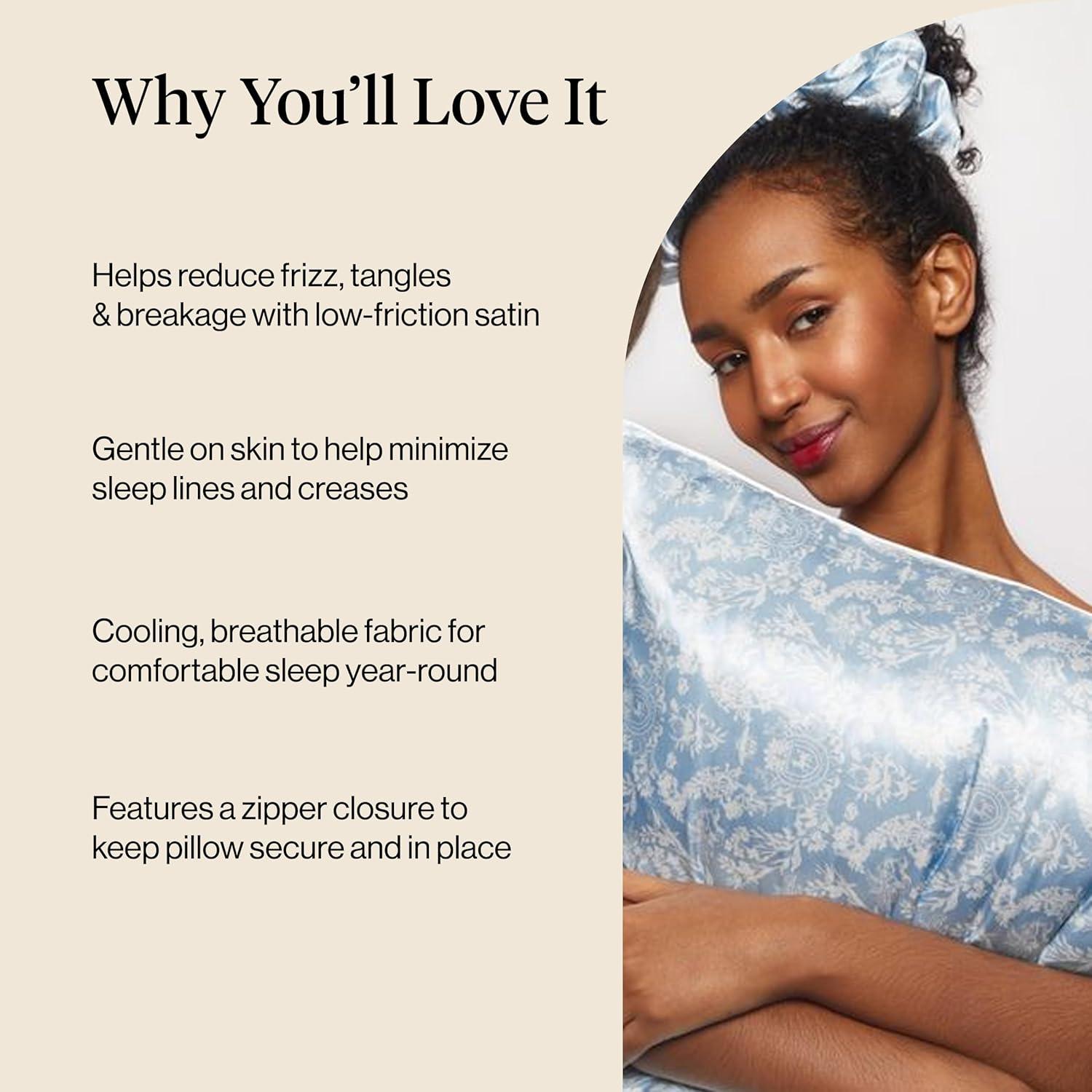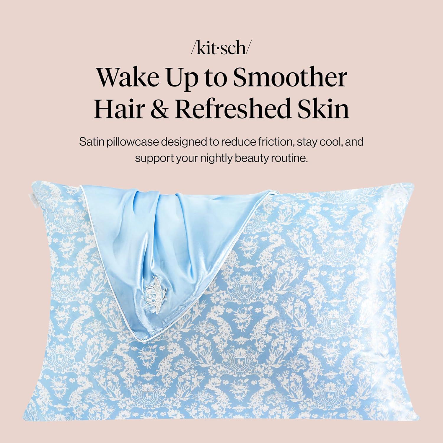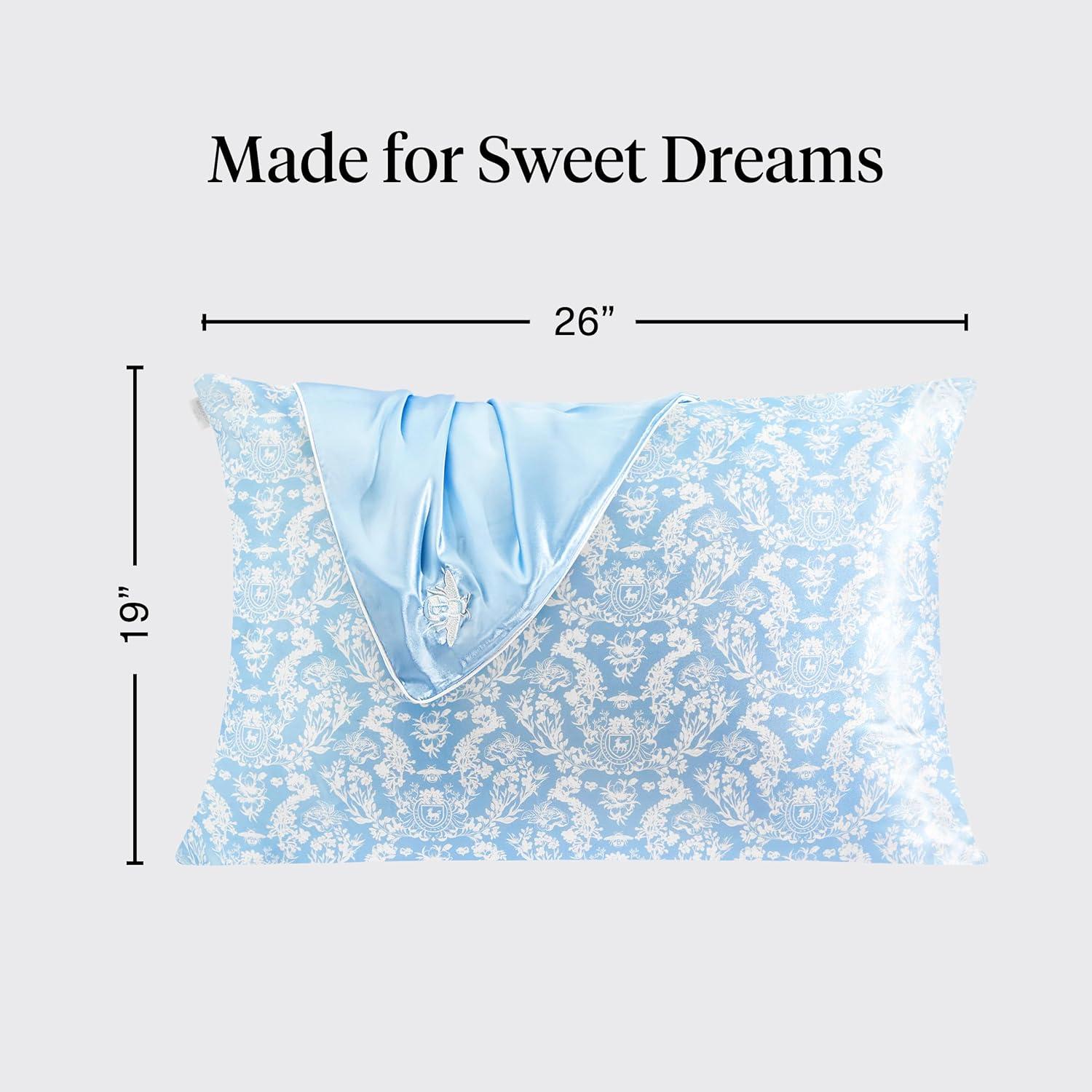 • Kitsch x BT21 Satin Pillowcase with Zipper – Better Than Silk Pillowcase, Koya Character & Funky Floral Print – Soft Cooling Toddler Bed Time Pillow Case for Hair & Skin – Queen/Standard 19×26(Bridgerton – Toile De Blue)