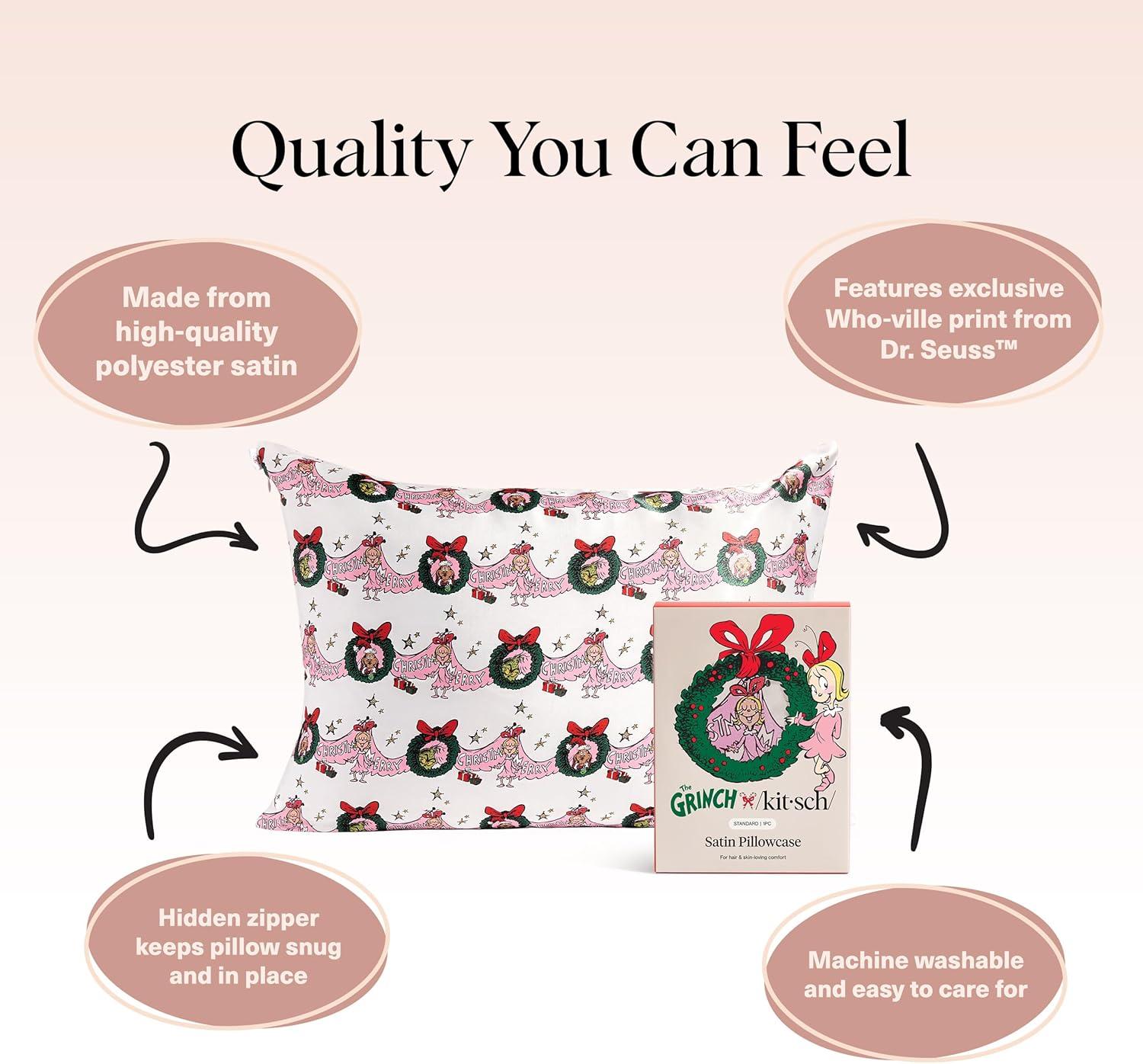 • Kitsch x BT21 Satin Pillowcase with Zipper – Better Than Silk Pillowcase, Koya Character & Funky Floral Print – Soft Cooling Toddler Bed Time Pillow Case for Hair & Skin – Queen/Standard 19×26(Elf – North Pole)