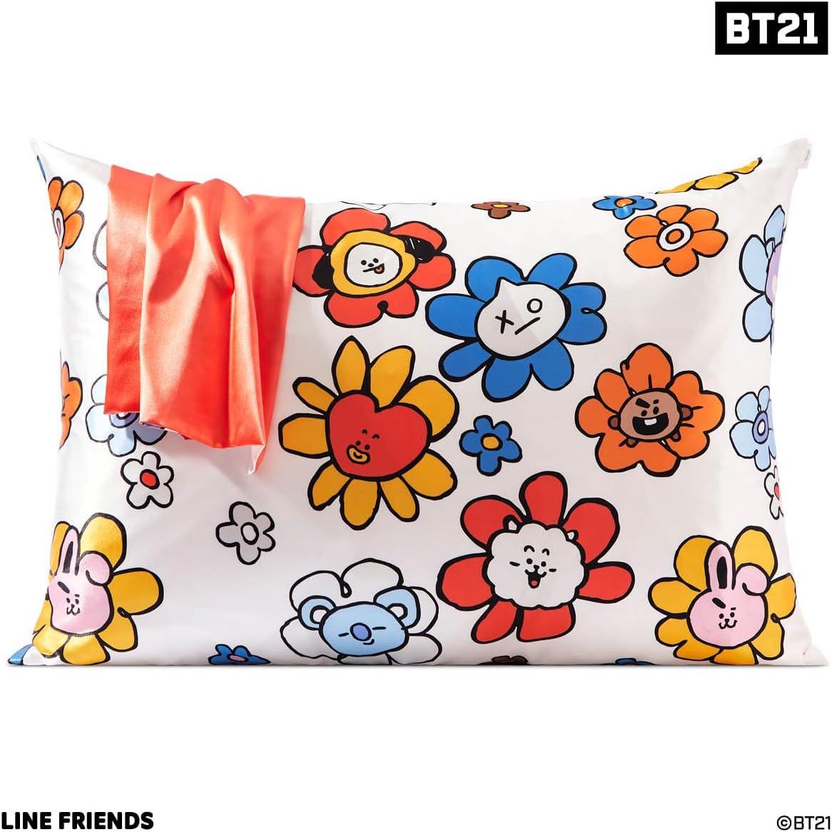 • Kitsch x BT21 Satin Pillowcase with Zipper – Better Than Silk Pillowcase, Koya Character & Funky Floral Print – Soft Cooling Toddler Bed Time Pillow Case for Hair & Skin – Queen/Standard 19×26(Bt21 – Koya)