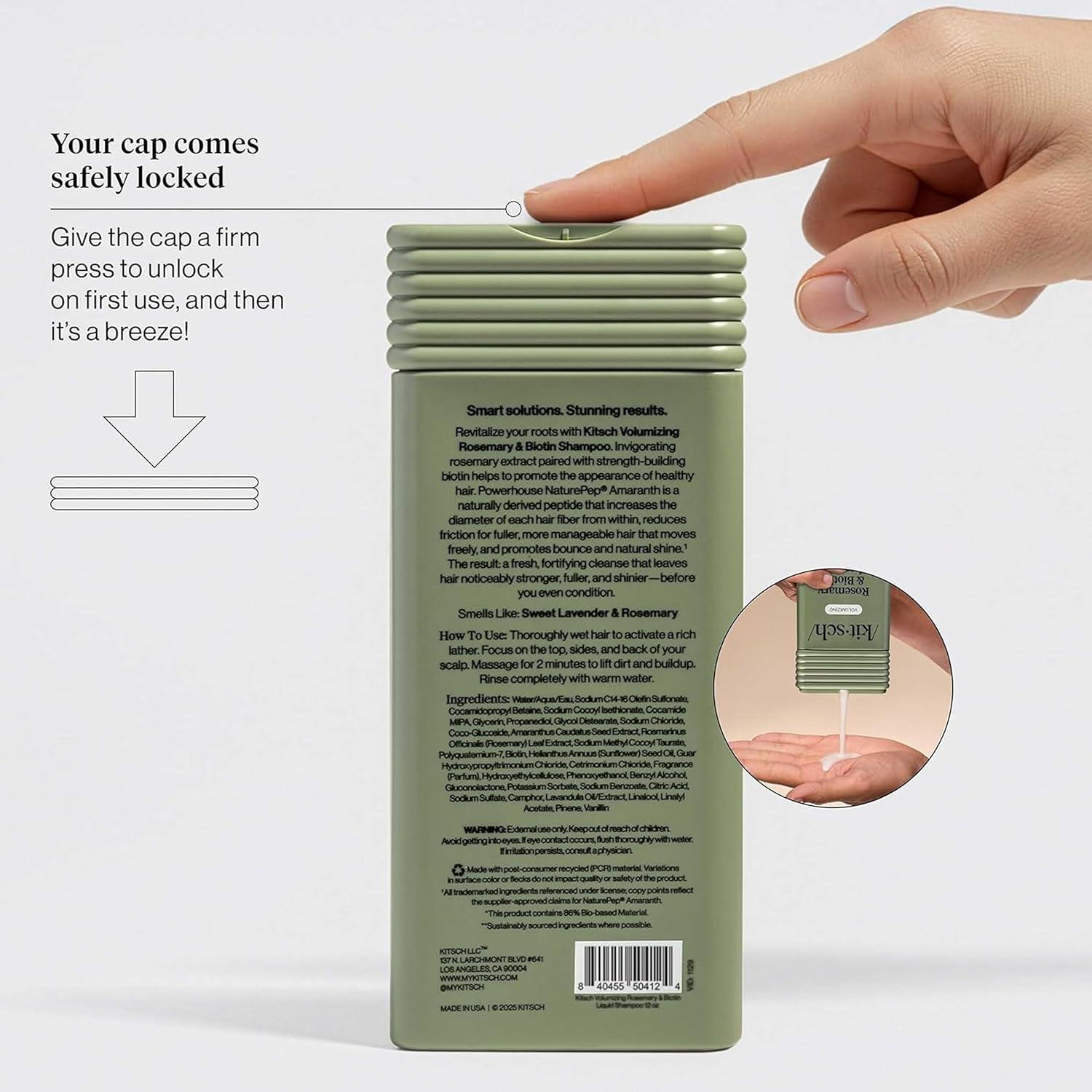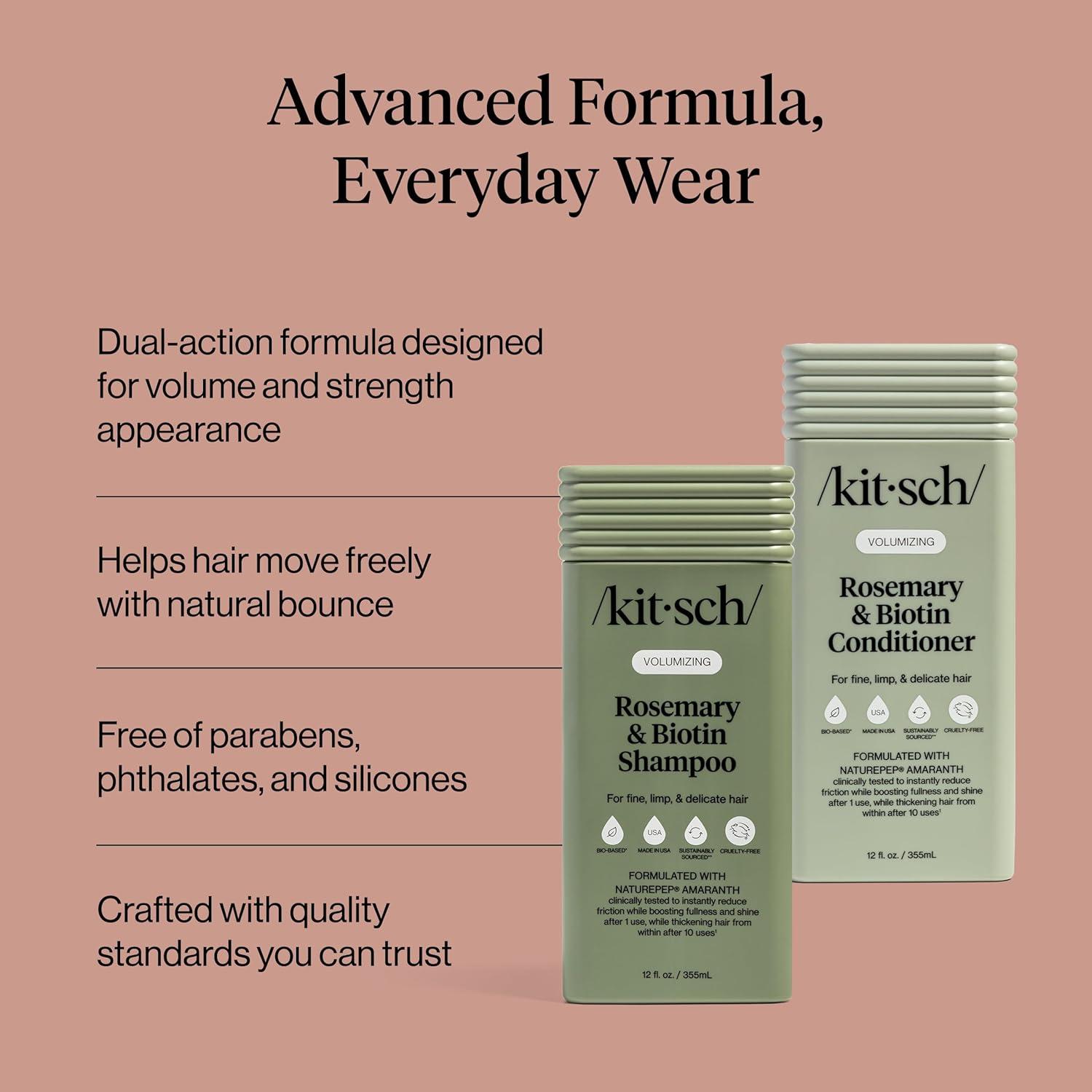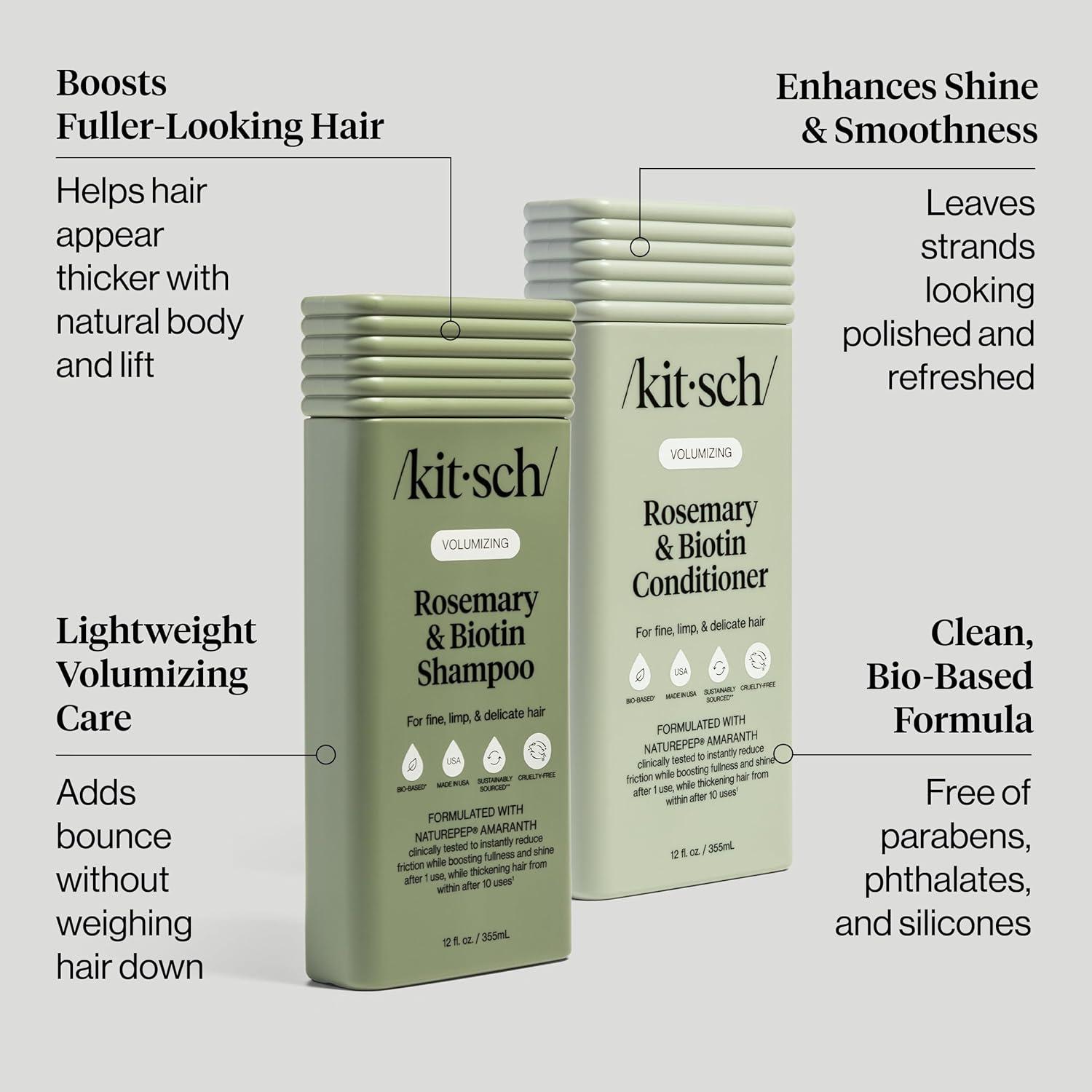 • Kitsch Volumizing Rosemary & Biotin Liquid Shampoo and Conditioner Set for Hair Growth – Shampoo for Men and Women, Boosts Fullness & Shine After 1 Use – Clean Bio-Based Hair Care