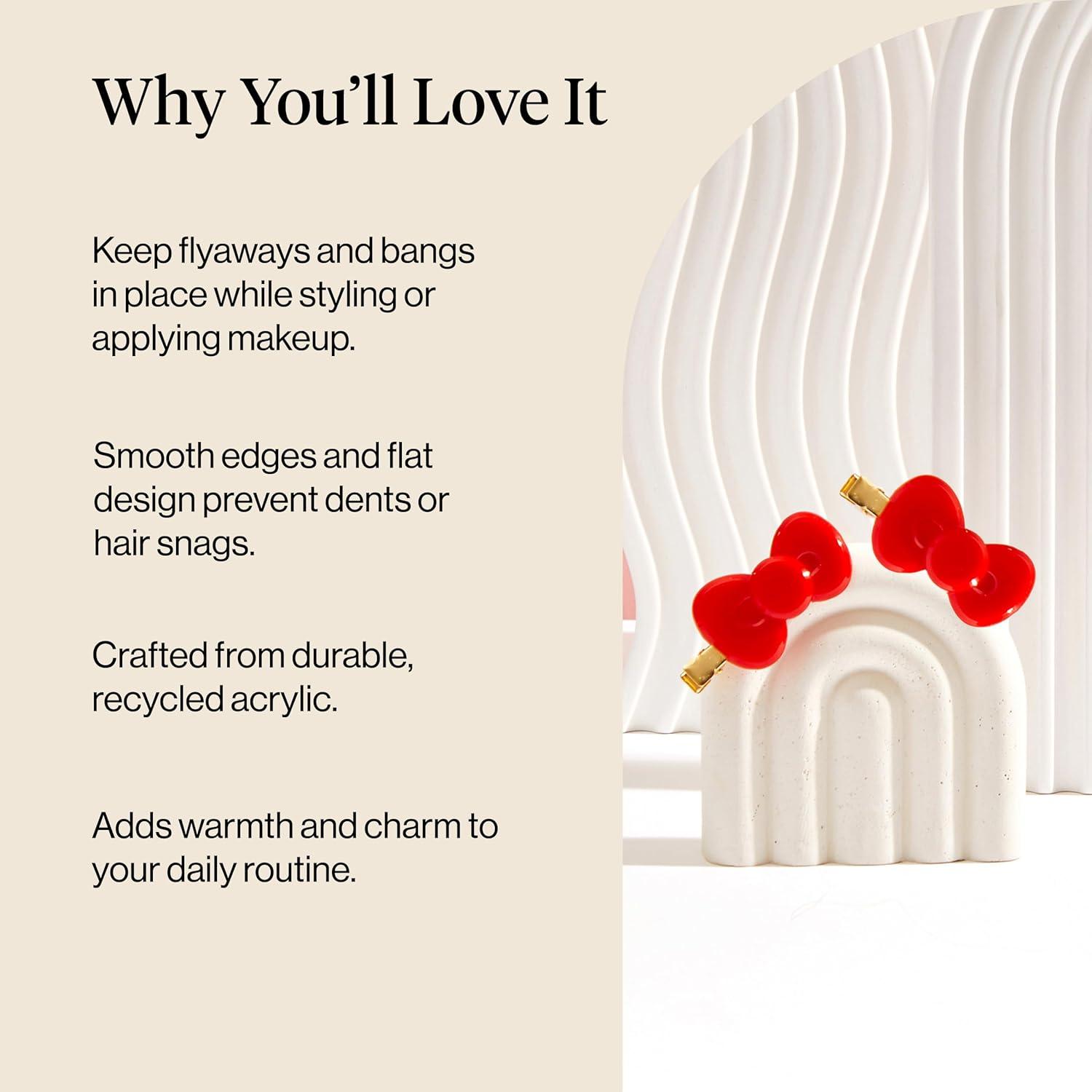 • Hello Kitty x Kitsch Creaseless Hair Clips for Women – No Crease, No Bend Hair Clips for Styling, Bangs, Makeup Application, Face Wash | Durable Plastic – Red Bow Design | Ideal Gifts for Women, 2pc(Red Kitty Bow)