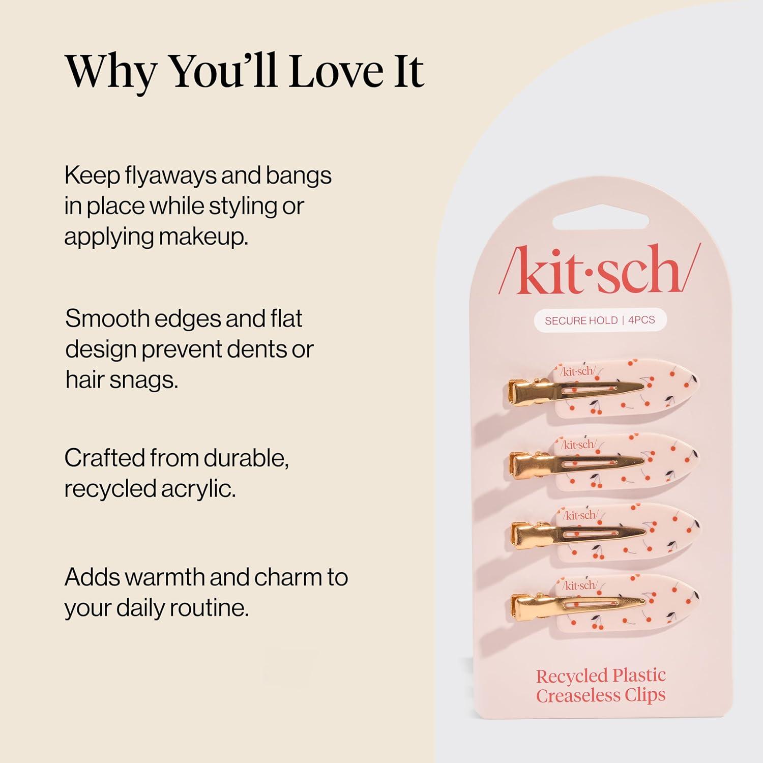• Hello Kitty x Kitsch Creaseless Hair Clips for Women – No Crease, No Bend Hair Clips for Styling, Bangs, Makeup Application, Face Wash | Durable Plastic – Red Bow Design | Ideal Gifts for Women, 2pc(Cherry Print)