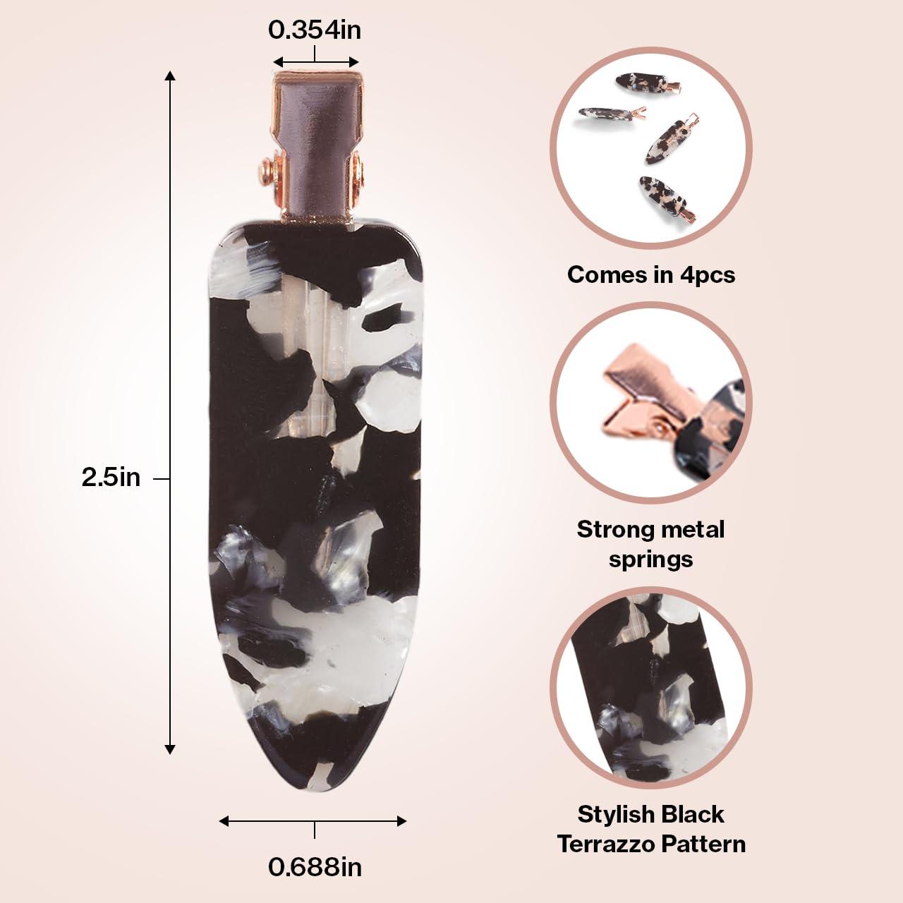 • Hello Kitty x Kitsch Creaseless Hair Clips for Women – No Crease, No Bend Hair Clips for Styling, Bangs, Makeup Application, Face Wash | Durable Plastic – Red Bow Design | Ideal Gifts for Women, 2pc(Black Terrazzo)