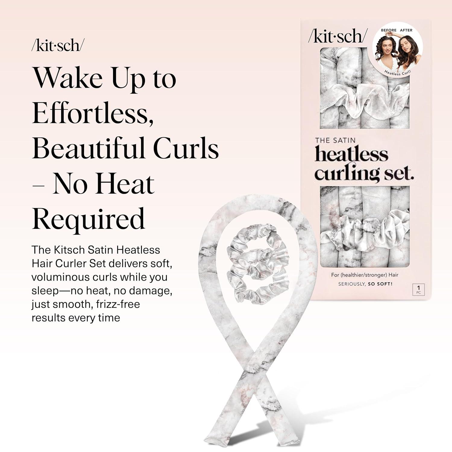 • Hello Kitty x Kitsch Satin Heatless Hair Curler Set – Heatless Curls Overnight, Hair Rollers for Soft Curls & Frizz-Free Styling, No Heat Curlers To Sleep in, Curling Rod Headband – Pink Kitty Faces(08 Marble)