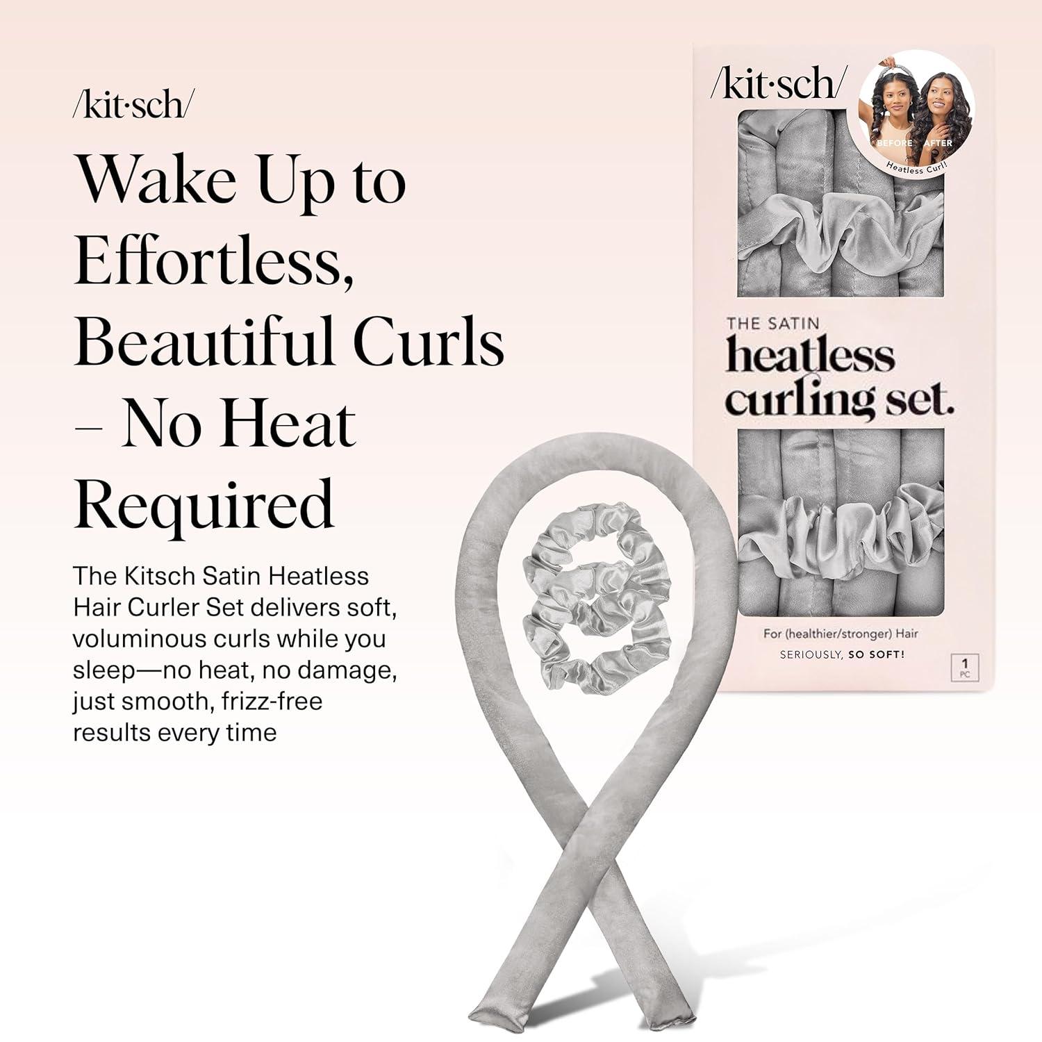 • Hello Kitty x Kitsch Satin Heatless Hair Curler Set – Heatless Curls Overnight, Hair Rollers for Soft Curls & Frizz-Free Styling, No Heat Curlers To Sleep in, Curling Rod Headband – Pink Kitty Faces(07 Silver)