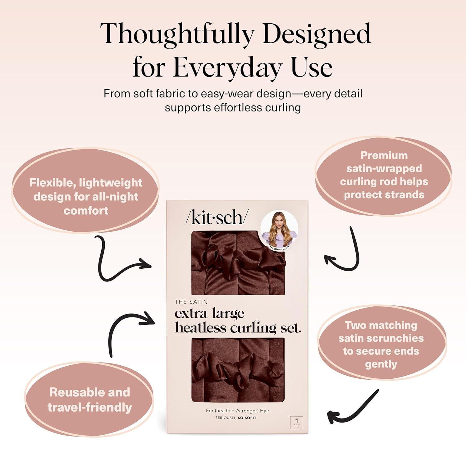 • Hello Kitty x Kitsch Satin Heatless Hair Curler Set – Heatless Curls Overnight, Hair Rollers for Soft Curls & Frizz-Free Styling, No Heat Curlers To Sleep in, Curling Rod Headband – Pink Kitty Faces(04 Chocolate)