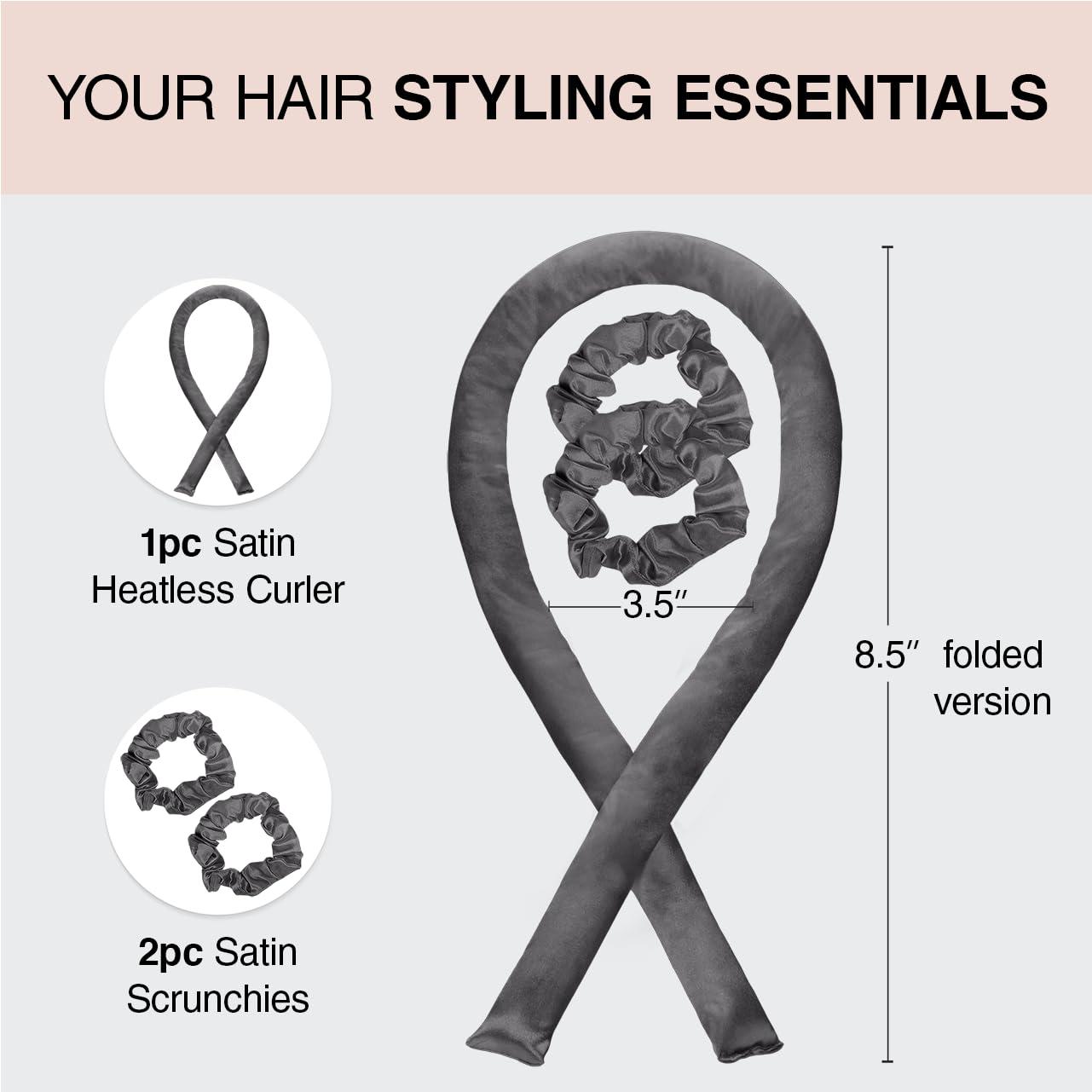 • Hello Kitty x Kitsch Satin Heatless Hair Curler Set – Heatless Curls Overnight, Hair Rollers for Soft Curls & Frizz-Free Styling, No Heat Curlers To Sleep in, Curling Rod Headband – Pink Kitty Faces(02 Charcoal)