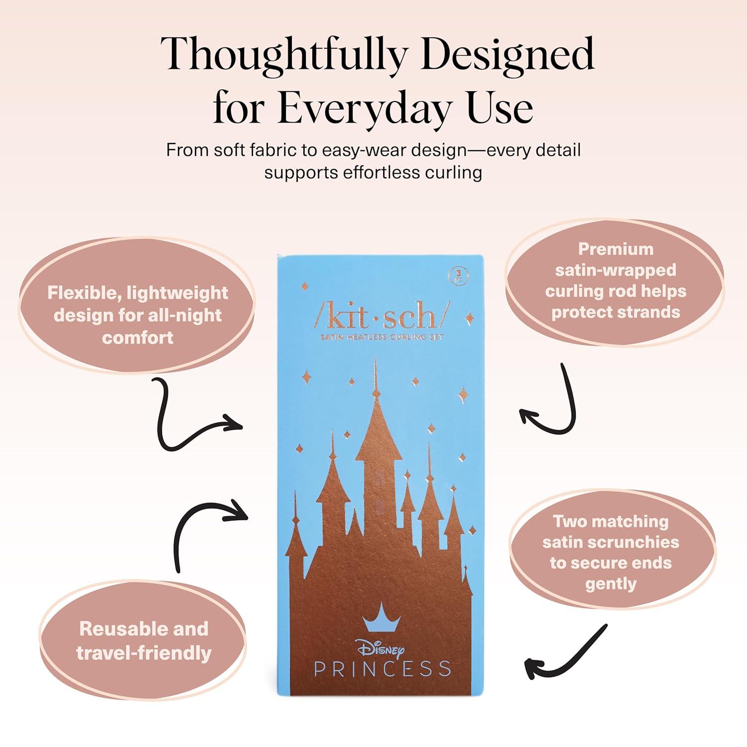 • Hello Kitty x Kitsch Satin Heatless Hair Curler Set – Heatless Curls Overnight, Hair Rollers for Soft Curls & Frizz-Free Styling, No Heat Curlers To Sleep in, Curling Rod Headband – Pink Kitty Faces(09 Princess Party)