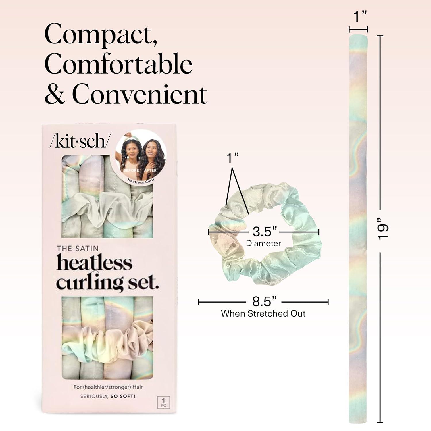 • Hello Kitty x Kitsch Satin Heatless Hair Curler Set – Heatless Curls Overnight, Hair Rollers for Soft Curls & Frizz-Free Styling, No Heat Curlers To Sleep in, Curling Rod Headband – Pink Kitty Faces(01 Sunset Tie Dye)