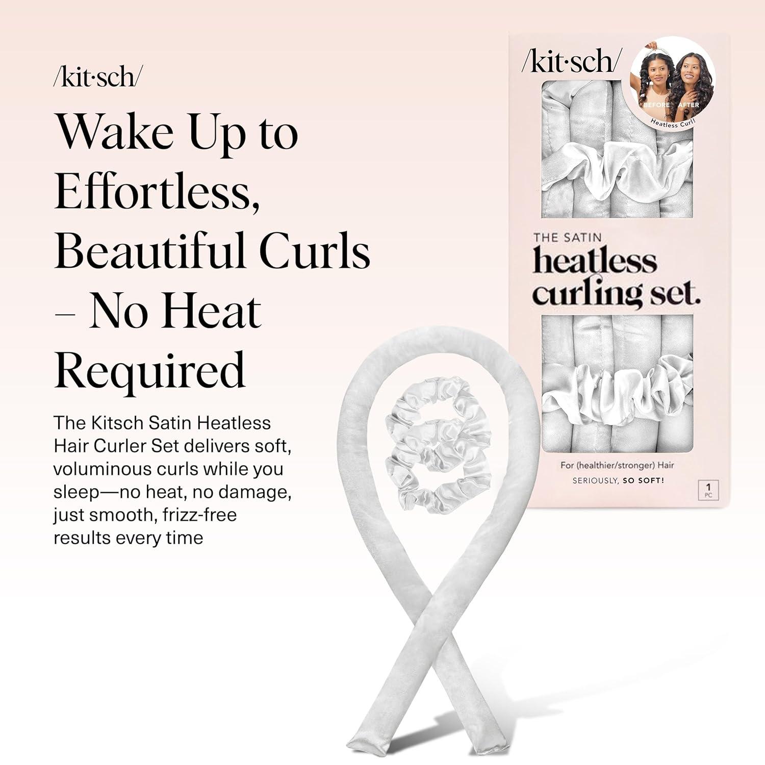 • Hello Kitty x Kitsch Satin Heatless Hair Curler Set – Heatless Curls Overnight, Hair Rollers for Soft Curls & Frizz-Free Styling, No Heat Curlers To Sleep in, Curling Rod Headband – Pink Kitty Faces(05 Ivory)