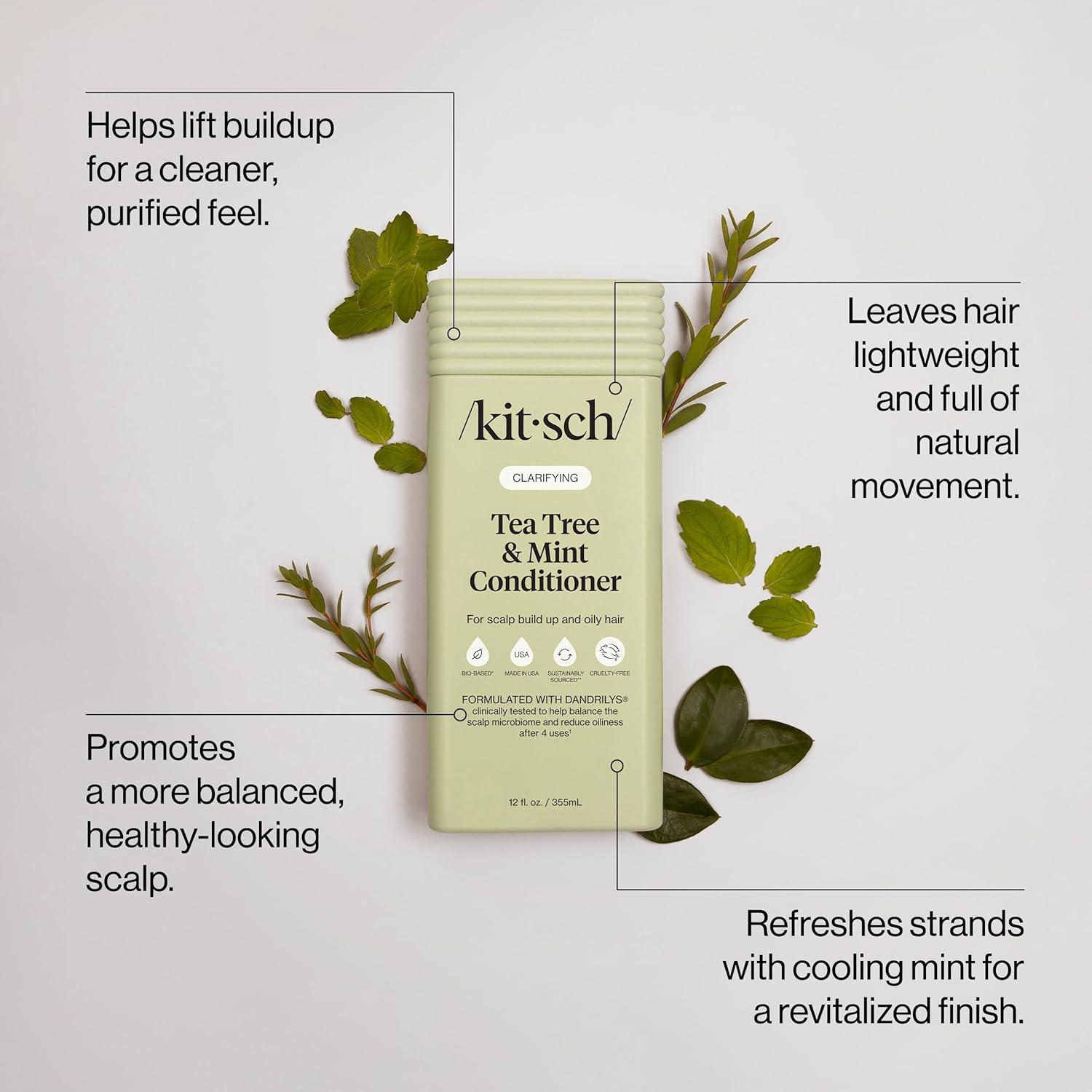 Kitsch Clarifying Tea Tree Liquid Conditioner for Women & Men – Lightweight Hydration Hair Conditioner with Peppermint & Tea Tree Oil for Oily Hair & Scalp Buildup – Made in USA Hair Care – 12 oz