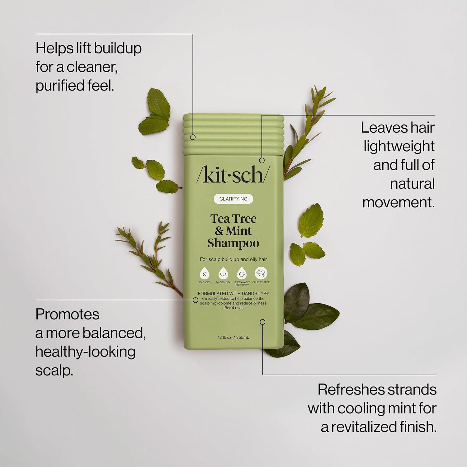 Kitsch Clarifying Tea Tree & Mint Liquid Shampoo for Men and Women – Clarifying Shampoo with Peppermint & Tea Tree Oil for Oily Hair & Scalp Buildup – Clean Color-Safe Hair Care, Made in USA – 12 oz